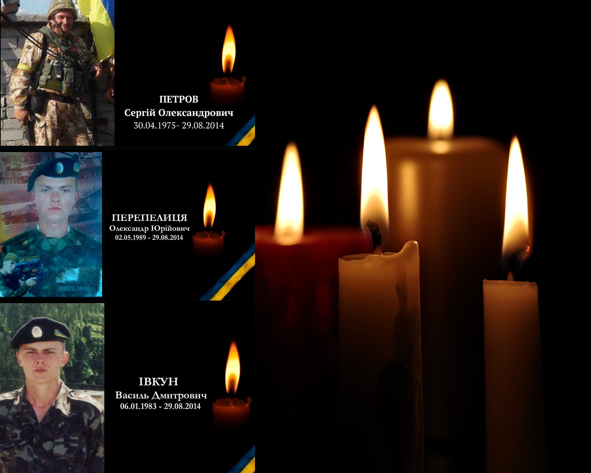 Вшановуємо пам’ять загиблих героїв, які віддали життя під час Іловайського котла: Сергія Петрова, Василя Івкуна та Олександра Перепелиці.