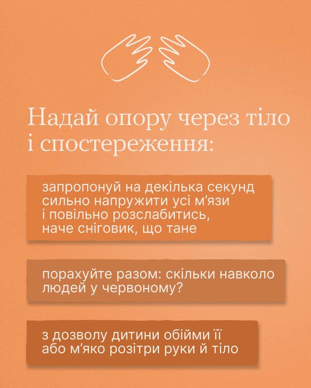 У каруселі експерти програми ментального здоров’я «Ти як?» зібрали прості дії, які допоможуть підтримати дитину під час панічної атаки 👇