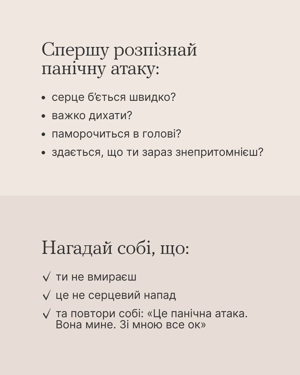 Але з цим можна впоратись. Спробуй техніки з каруселі від експертів програми ментального здоров’я «Ти як?», коли наступного разу переживатимеш панічну атаку: вони прості та точно дієві👇
