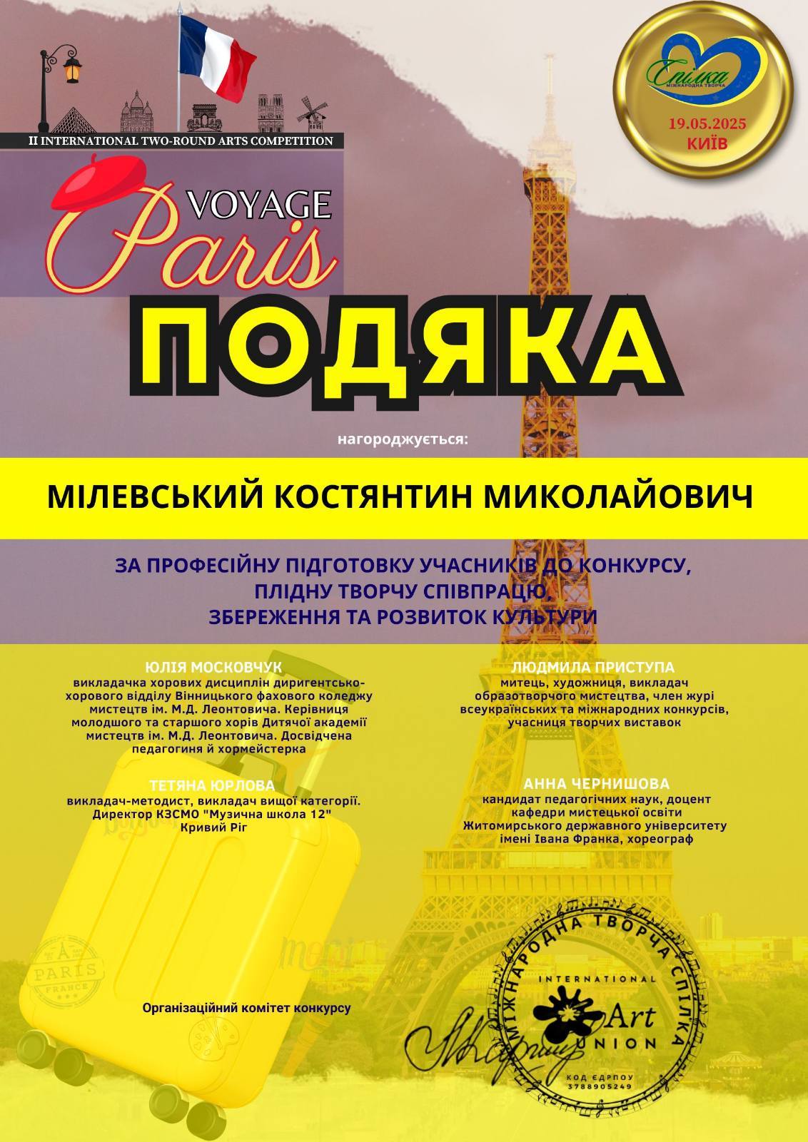 🤝Щиро вітаємо 🏫 Київська дитяча школа мистецтв N3 з перемогою у ІІ Міжнародному двотуровому мистецькому конкурсі «Паризькі подорожі»!