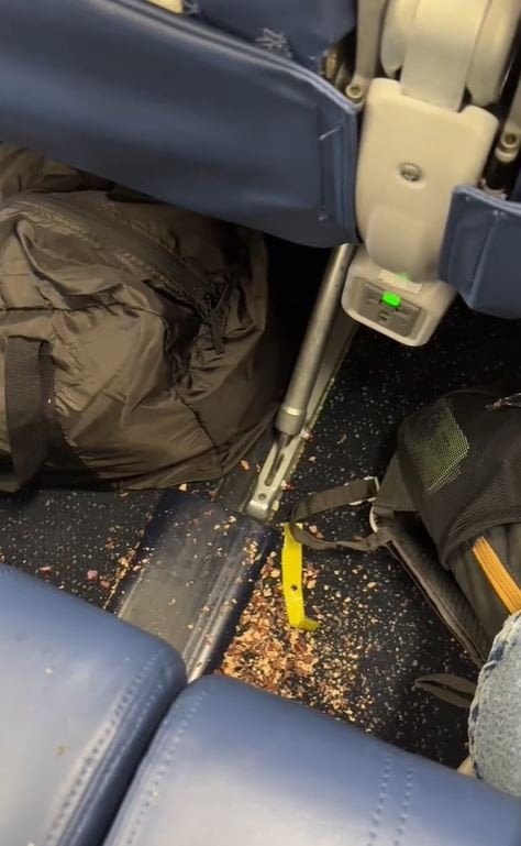 «Я побачила, як жінка поруч зі мною чистить горіхи і просто викидає їх на підлогу… Я попросила її припинити, але було вже пізно», — розповіла авторка відео в описі до свого ролика. Це демонструє неповагу до інших пасажирів та правил гігієни під час авіаперельотів.