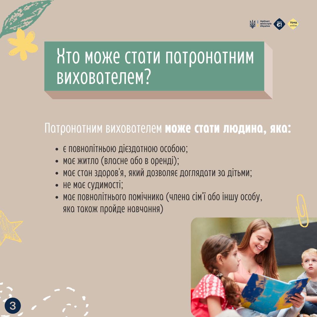 Патронат над дитиною – важлива форма підтримки дітей, які опинилися у складних життєвих обставинах. Патронатний вихователь забезпечує тимчасовий догляд та виховання дитини в умовах сім’ї, коли вона втратила батьківське піклування. Це чудова альтернатива інтернатним закладам, де дитина може отримати необхідну турботу, увагу та безпечне середовище для розвитку.