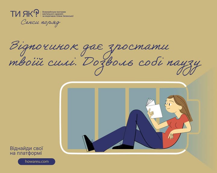 Чи згодні ви з тим, що пауза – це прояв сили, а не слабкості? У сучасному світі, де темп життя постійно зростає, важливо знаходити час для себе та свого ментального здоров’я. Всеукраїнська програма ментального здоров’я «Ти як?» за ініціативою Олени Зеленської нагадує нам про це.