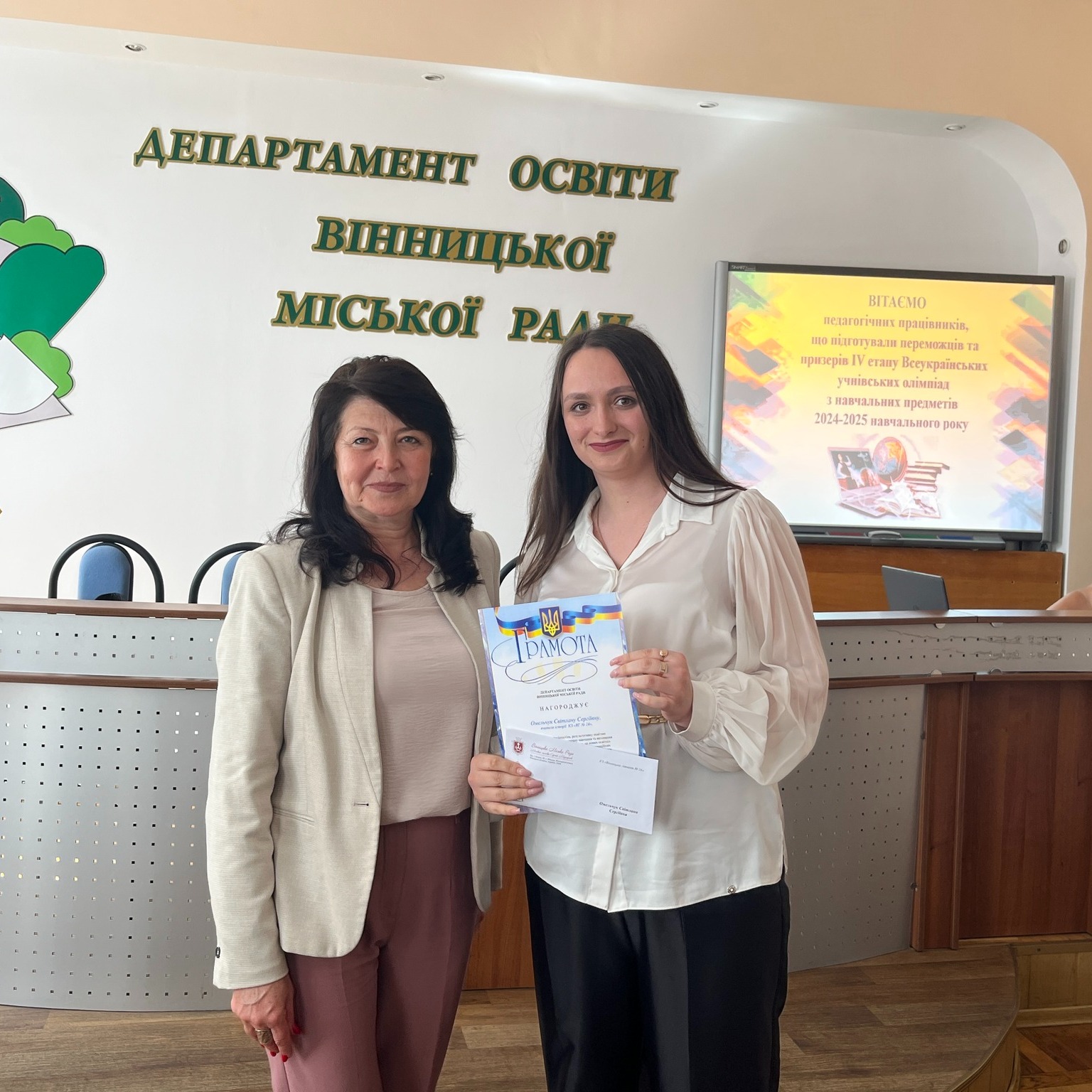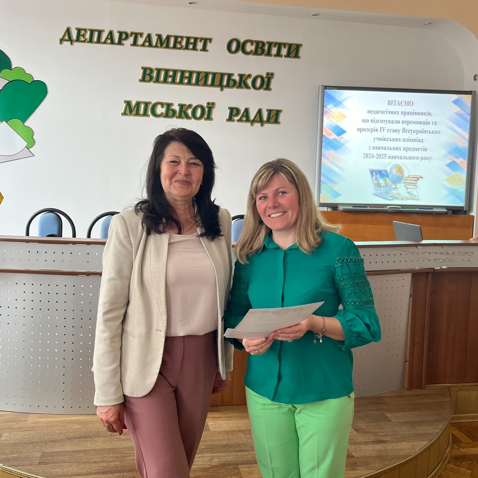 3 червня у Вінниці міська рада та департамент освіти ВМР відзначили 45 кращих освітян за їхні досягнення у 2024–2025 навчальному році. Особливу увагу приділили педагогічній майстерності та стійкості в умовах сучасних викликів. 13 вчителів отримали премії за значний внесок у підготовку переможців різноманітних олімпіад та наукових конкурсів.