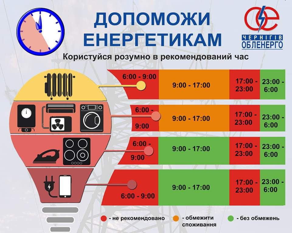 🙏 Будь ласка, по можливості, обмежте використання потужних побутових приладів – таких як пральні машини, бойлери, праски – у пікові години навантаження на енергосистему. Ці періоди зазвичай припадають на ранок (08:00-11:00) та вечір (17:00-23:00).