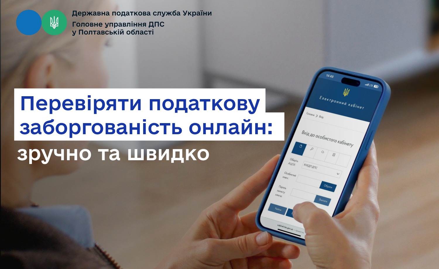 Головне управління ДПС у Полтавській області нагадує, щоб уникнути податкової заборгованості, необхідно регулярно перевіряти інформацію про її наявність або відсутність. В рамках реалізації стратегії створення безбар’єрного простору в Україні це можна зробити за допомогою зручних електронних сервісів: