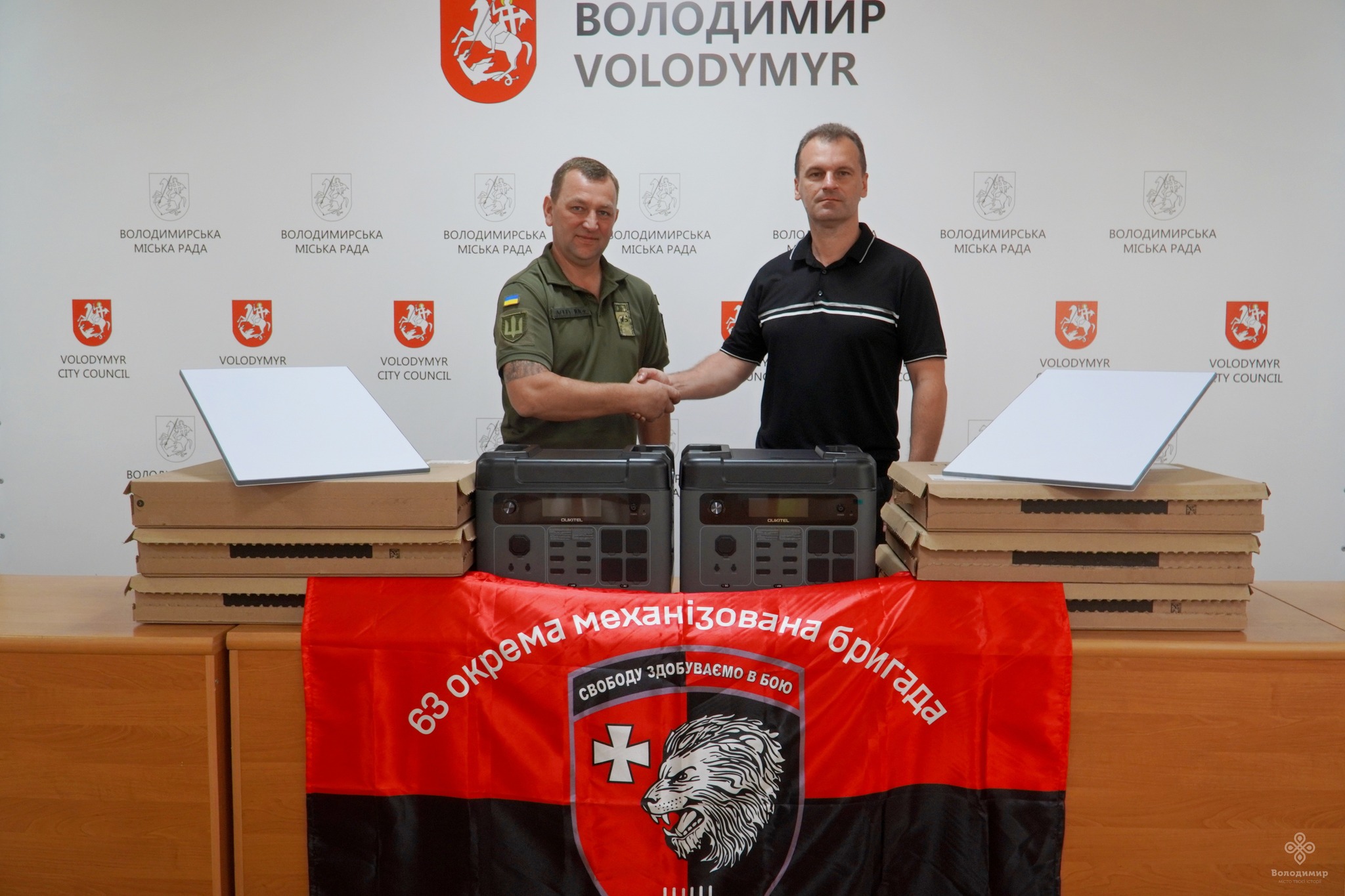 Наша громада не зупиняється у постійній підтримці ЗСУ. Сьогодні мав зустріч із представником 63 окремої механізованої бригади ЗСУ, під час якої передали шість Старлінків та шість зарядних станцій “Oukitel R2001 plus”. Дане обладнання, на загальну суму 230 тис. грн, було придбане за кошти місцевого бюджету.