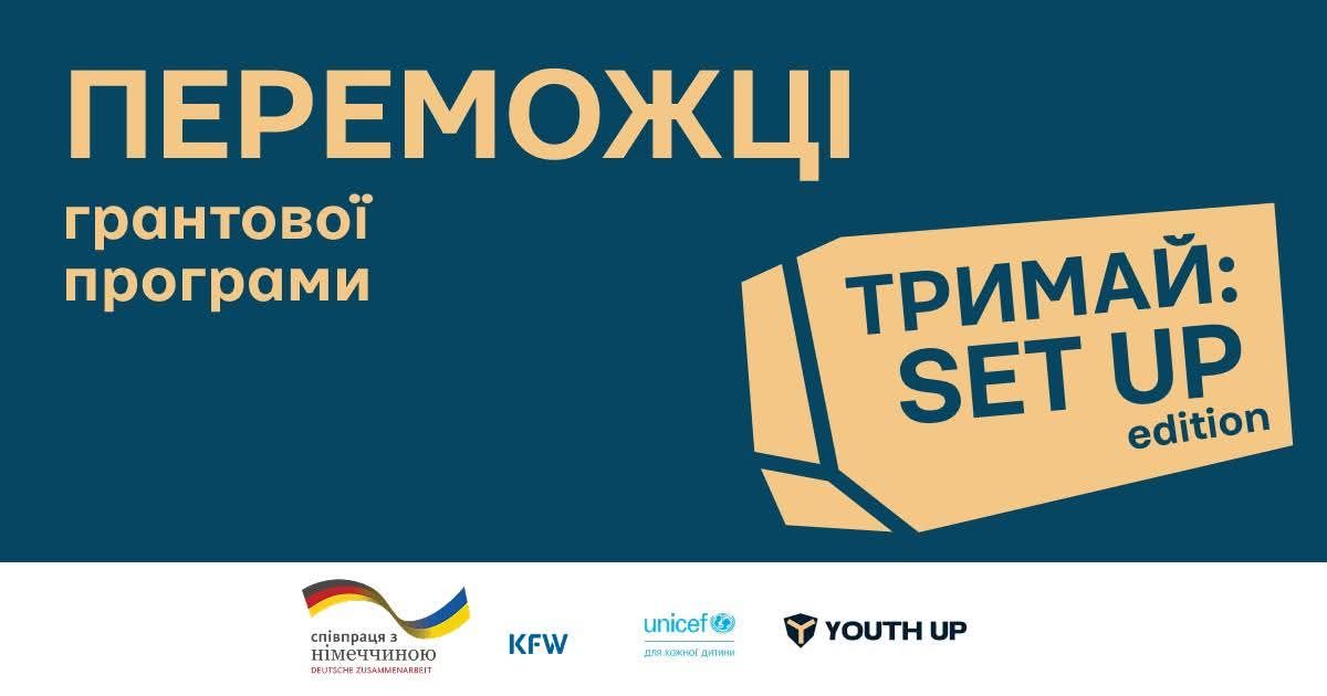Грантова хвиля «ТРИМАЙ: SetUp edition» реалізується ГО «YouthUp» спільно з UNICEF Ukraine за фінансової підтримки Федерального міністерства економічного співробітництва та розвитку Німеччини (BMZ) через державний банк розвитку KfW Посольство Німеччини в Києві / Deutsche Botschaft Kyjiw