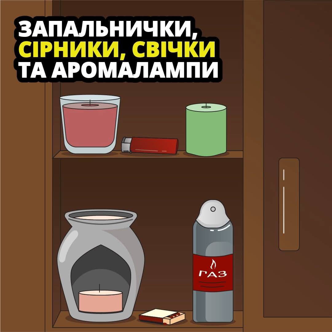 * **Сірники та запальнички:** Ці предмети є одними з найчастіших причин дитячих пустощів з вогнем. Зберігайте їх у недоступних для дітей місцях.