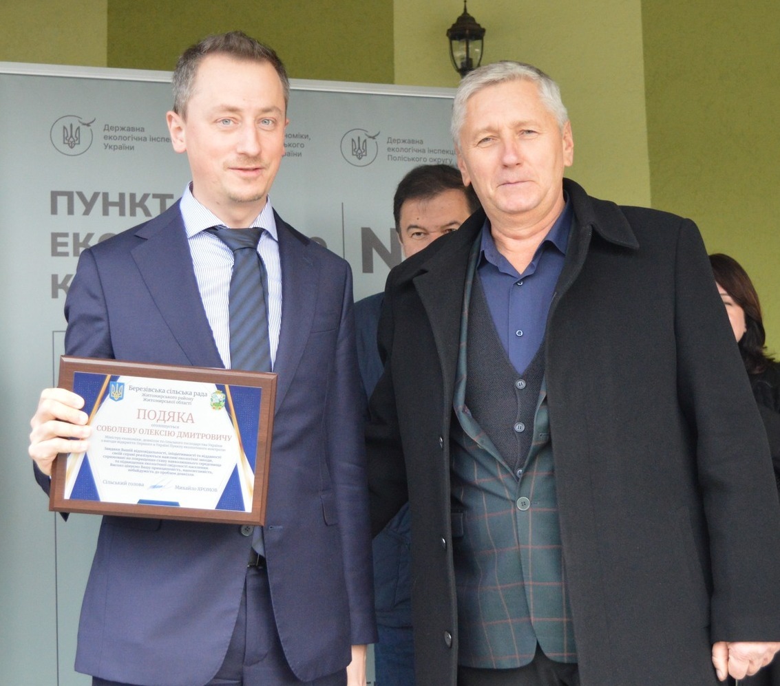 Андрій Наконечний, представник ПРООН, вручив ключі від сучасних мобільних лабораторій на базі автомобілів “Renault Duster” начальнику Державної екологічної інспекції Поліського округу Євгенію Медведовському. Ці автівки були придбані Програмою розвитку ООН за фінансової підтримки уряду Швеції. Почесні гості урочисто перерізали символічну стрічку, офіційно відкривши пункт.