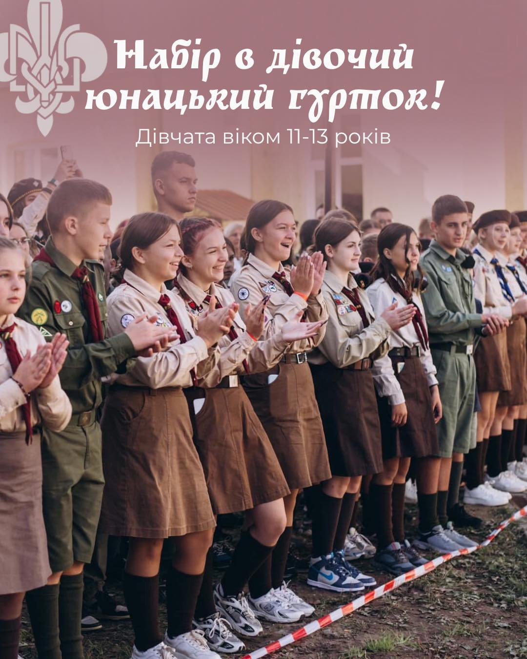 ПЛАСТ Пустомити з радістю оголошує про початок набору до пластового дівочого юнацького гуртка. Це чудова нагода для дівчат віком 11–13 років долучитися до активного та змістовного дозвілля. Під керівництвом досвідченої виховниці Віти Вікторії Закорчменної, учасниці зможуть розвивати свої лідерські якості, вчитися працювати в команді та пізнавати світ через цікаві заняття. Наш пластовий гурток – це не просто організація, це справжня родина, де кожна дівчина знайде підтримку, друзів та можливості для самореалізації. Ми пропонуємо унікальну програму, спрямовану на всебічний розвиток особистості, формування моральних цінностей та любов до Батьківщини.