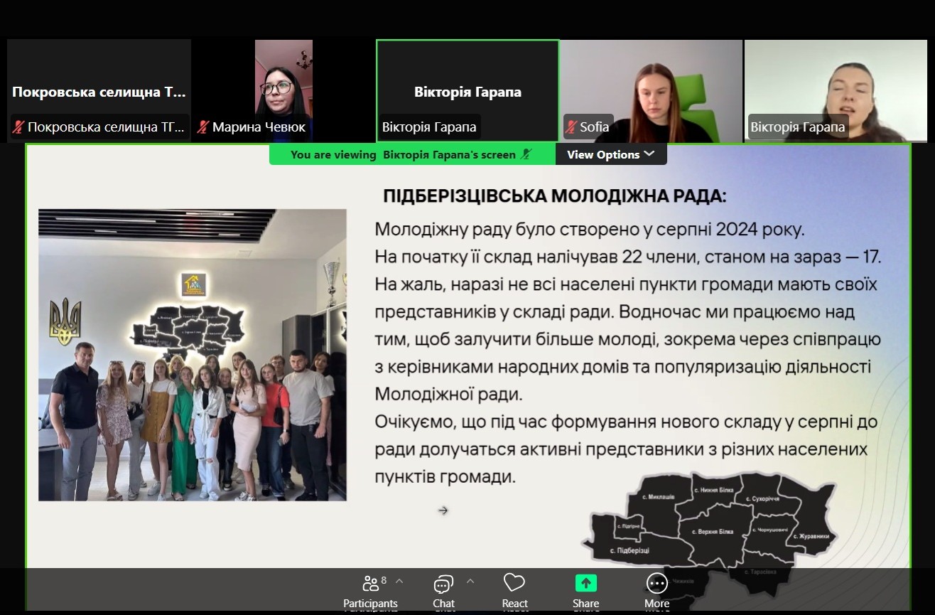 Війна змінила наше життя, але не змінила наше прагнення творити зміни. 10 квітня відбулася особлива онлайн-зустріч Молодіжних рад Покровської та Підберізцівської громад в рамках національного проєкту Пліч-о-пліч: Згуртовані громади
