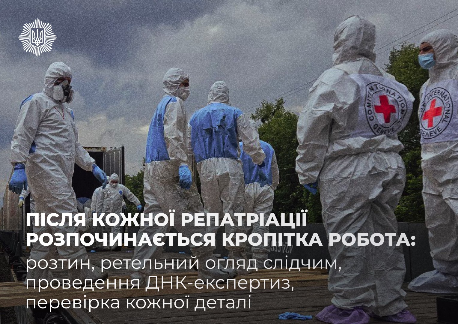 Кожен процес репатріації включає кропітку роботу: судово-медичний розтин, ретельний огляд слідчим, проведення ДНК-експертиз та перевірка кожної деталі для повернення тіл загиблих.