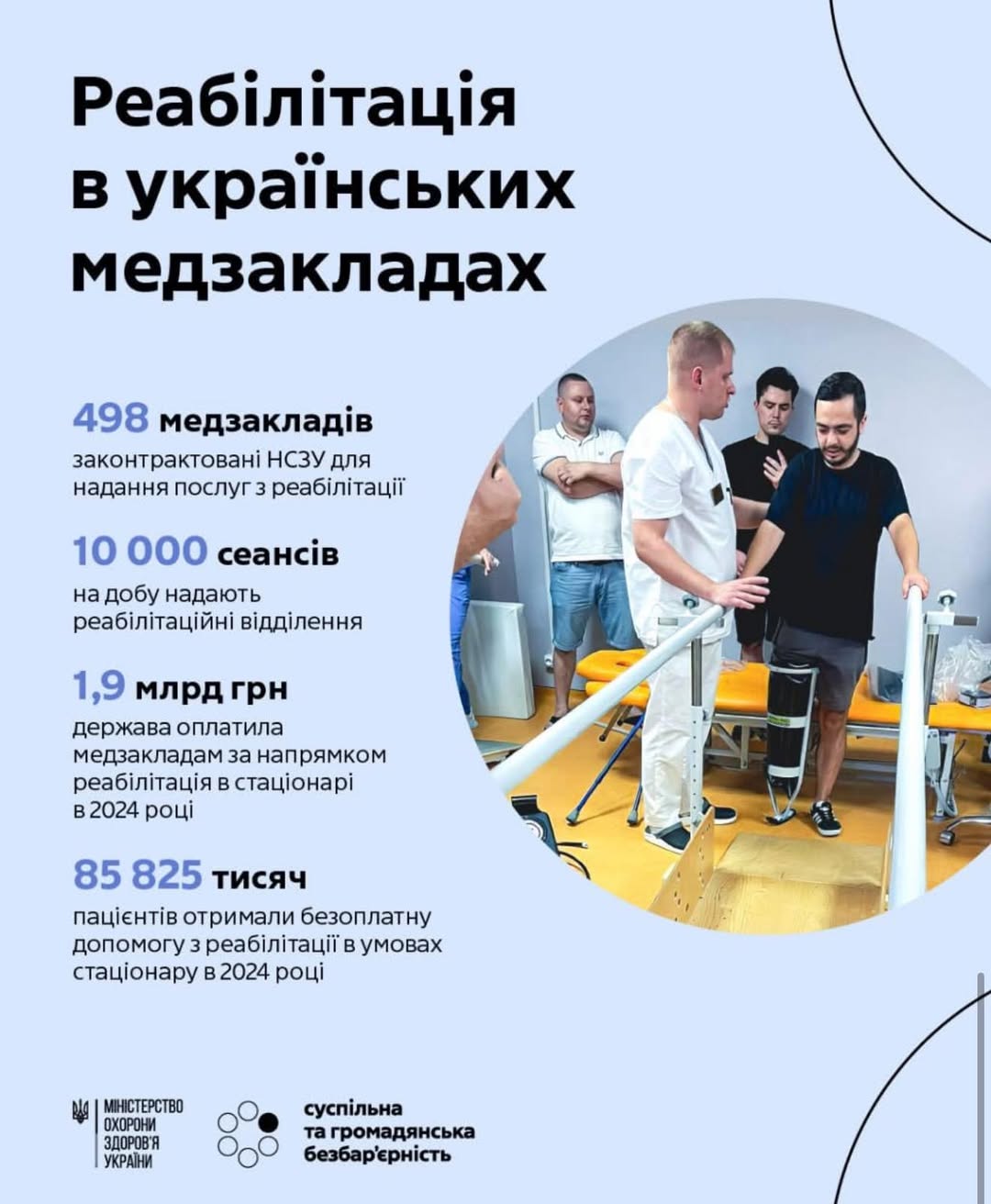 Щоб зробити реабілітаційну допомогу доступнішою, у 2022 році Програму медичних гарантій було розширено. Введено нові пакети: «Реабілітаційна допомога дорослим та дітям в стаціонарних умовах» та «Реабілітаційна допомога дорослим та дітям в амбулаторних умовах». Пацієнти мають можливість самостійно обирати медичний заклад, який законтрактовано Національною службою здоров’я України (НСЗУ), для отримання комплексної реабілітації. Важливо, що ці послуги є безоплатними та повністю фінансуються в рамках Програми медичних гарантій.