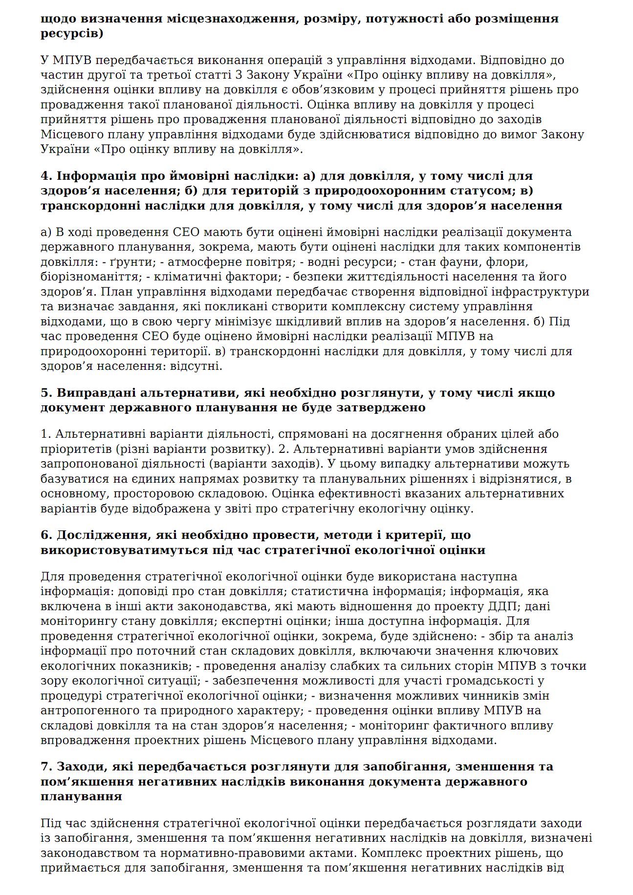 4) необхідність проведення транскордонних консультацій щодо проекту документа державного планування – відсутня.