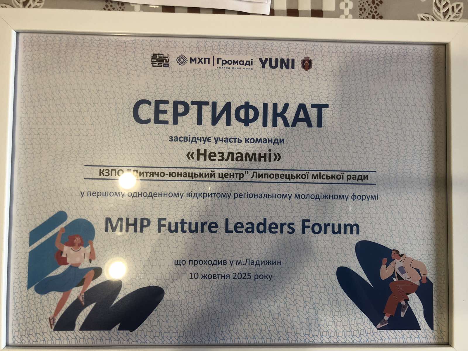 Пізно ввечері, стомлені, але сповнені позитивних емоцій, лідери молодіжного руху Липовеччини повернулися з м. Ладижин. Команда “НЕЗЛАМНІ” КЗПО “ДИТЯЧО-ЮНАЦЬКИЙ ЦЕНТР” успішно взяла участь у масштабному молодіжному форумі, продемонструвавши свою активність у численних конкурсах та квестах.