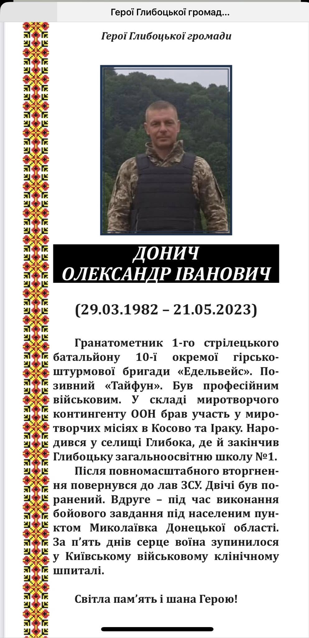 🇺🇦ДОНИЧ Олександр Іванович: Пам’яті Героя