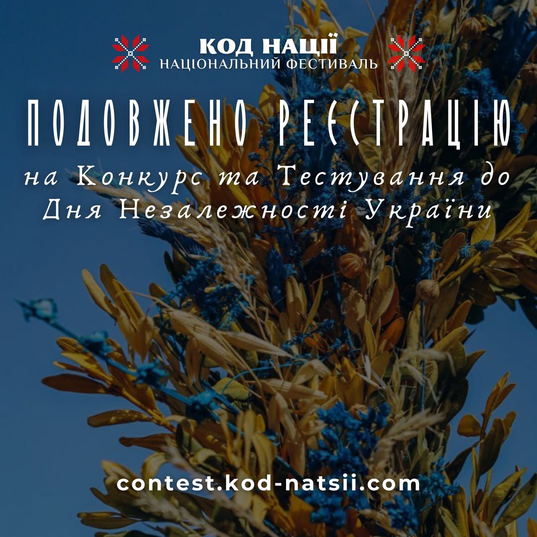 Це чудова нагода для творчої молоді продемонструвати свій талант та внести вагомий вклад у відзначення 34-річчя Незалежності нашої держави. **Фестиваль “Код Нації”** оголошує про продовження реєстрації для участі у різноманітних творчих проєктах.