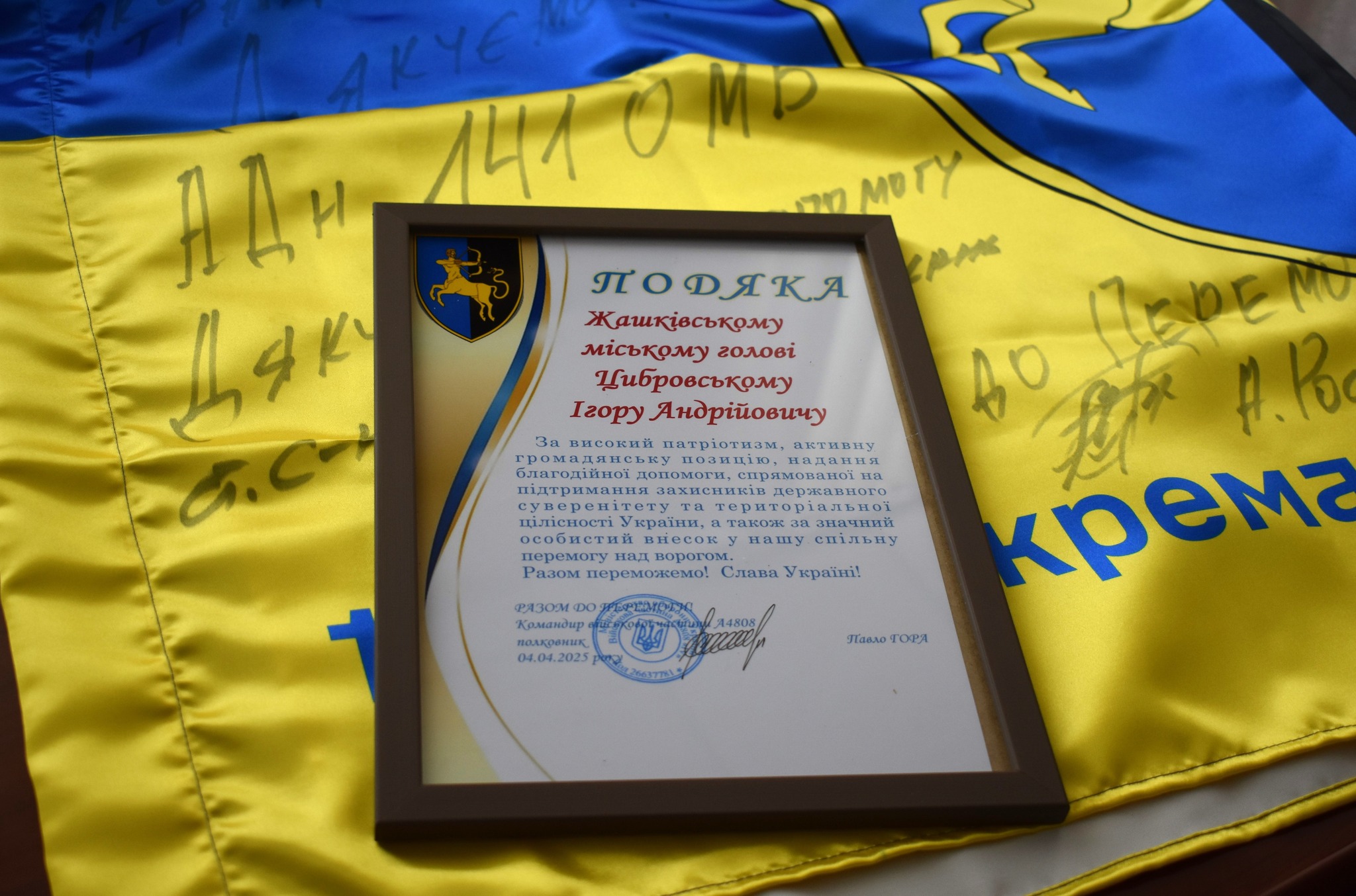 🖌 Нещодавно, завдяки спільним зусиллям міського голови 👤 Ігоря Цибровського та нашої землячки, Світлани Кожеченкової, яка зараз проживає в Латвії, було передано 🚘 транспортний засіб військовослужбовцю з Житницького старостинського округу 🪖 Едуарду Будьонному. Днями очільник громади отримав 🖼 подяку від командира військової частини, де служить наш земляк, а також бойовий стяг бригади 🇺🇦.