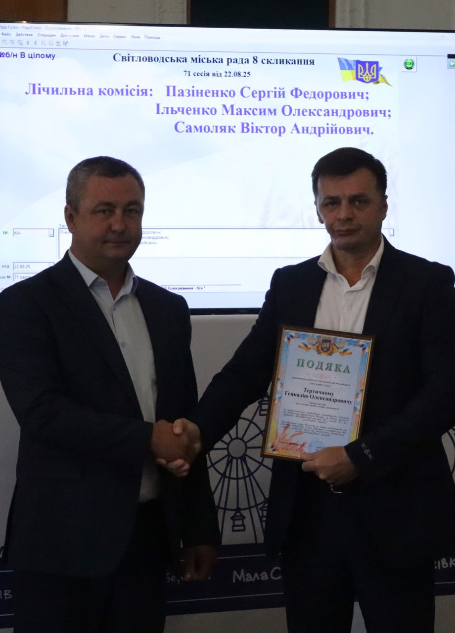 Подяка за неоціненний внесок у підтримку Збройних Сил України та громади міста Світловодськ. 22 серпня, на сесії Світловодської міської ради, секретар міської ради Роман Домбровський висловив щиру вдячність місцевим підприємцям та волонтерам, відзначивши їхню надзвичайну роль у складний для країни час. Ці люди продемонстрували надзвичайну громадянську позицію, надавши вагому допомогу нашим захисникам та зробивши значний внесок у розвиток рідної громади. Особливо було підкреслено, що така підтримка є безцінною і надзвичайно важливою для наближення перемоги. Нагороди отримали: Король Ірина Федорівна, засновниця ТОВ «Гідросенд»; Король Віктор Михайлович, генеральний директор ПрАТ «Віктор і К» (ТМ «Королівський смак»); Король Максим Вікторович, виконуючий директор ПрАТ «Віктор і К» (ТМ «Королівський смак»); Тертичний Геннадій Олександрович, директор БФ “Всеукраїнський альянс допомоги”. Їхня самовідданість та активна участь у благодійних проєктах є прикладом для всіх мешканців міста. Міська рада висловлює глибоку повагу та вдячність усім, хто долучається до підтримки ЗСУ та працює на благо громади. Продовжуємо бути сильними разом!