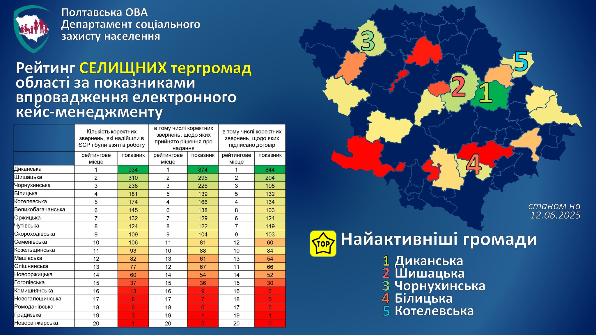 Полтавська область демонструє значні успіхи у впровадженні цифрових рішень в сфері соціального захисту. Вже більше пів року місцеві громади активно використовують електронний кейс-менеджмент, який базується на Соціальному порталі Мінсоцполітики. Цей сучасний інструмент дозволяє в онлайн-режимі оперативно приймати звернення від громадян, швидко ухвалювати обґрунтовані рішення щодо надання необхідних соціальних послуг та ефективно укладати відповідні договори.