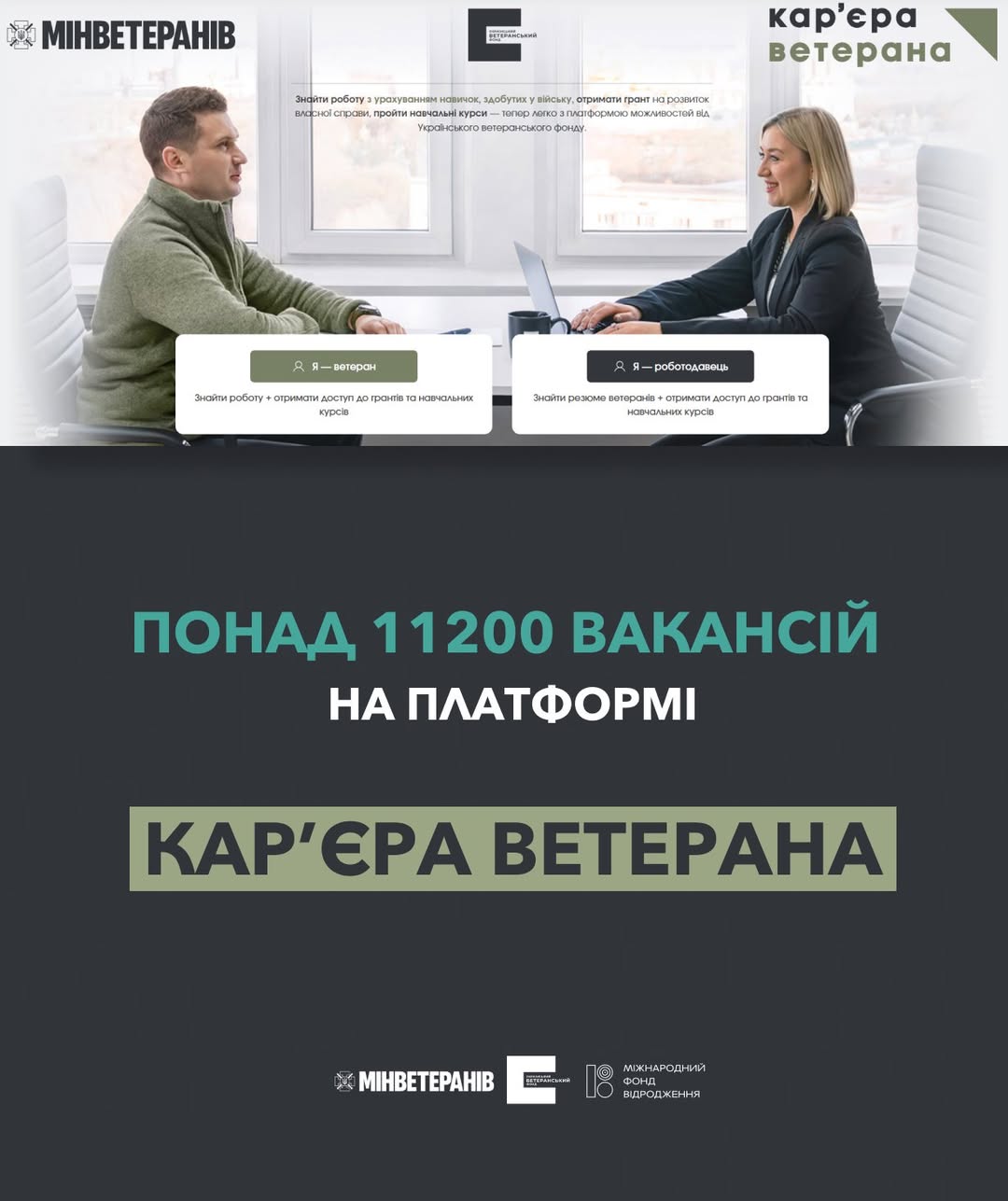 Понад 11200 актуальних вакансій по всій Україні вже чекають ветеранів і ветеранок на платформі «Карʼєра ветерана»💼