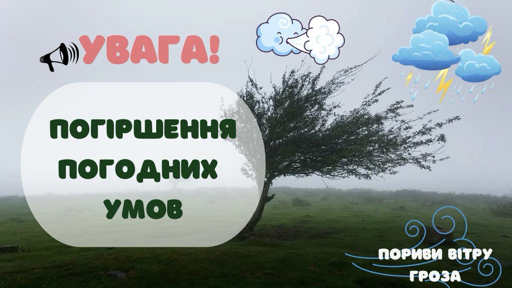 За інформацією відділу з питань надзвичайних ситуацій Городнянської міської ради завтра, 28 червня, по Городнянській громаді очікується посилення вітру 15-20 м/с,гроза