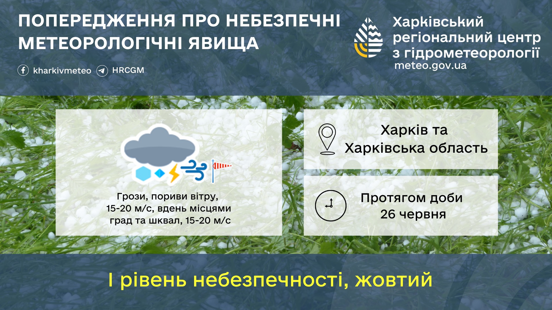 📌⚠️‼️Попередження про небезпечні метеорологічні явища по Харківщині 26 червня
