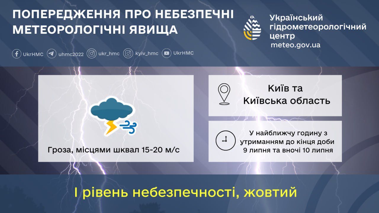 У найближчу годину з утриманням до кінця доби 09 липня та вночі 10