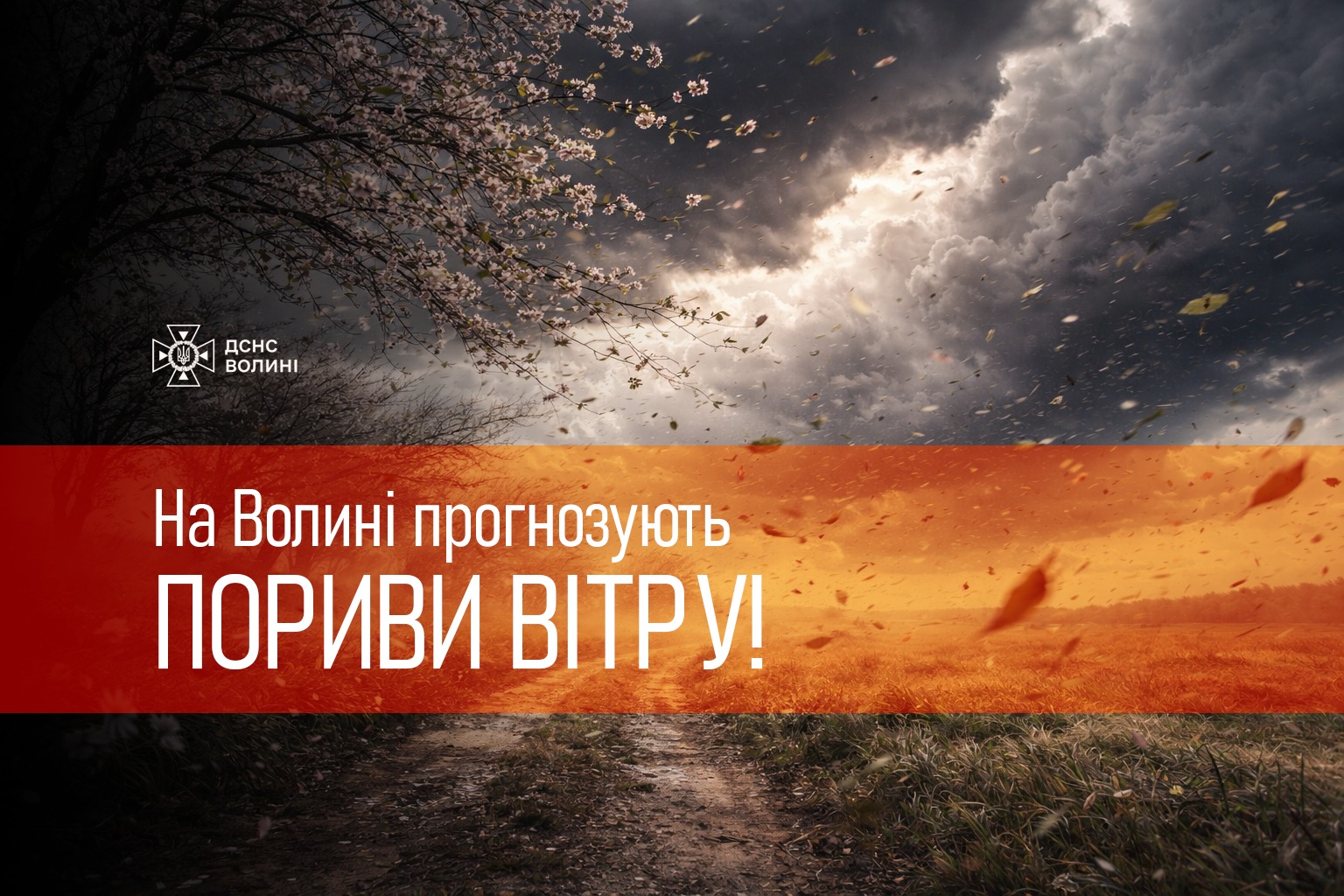 У Луцьку та на території Волинської області у найближчі 1-2 години із збереженням до кінця доби 6 квітня очікується сильний вітер 25-28 м/с.