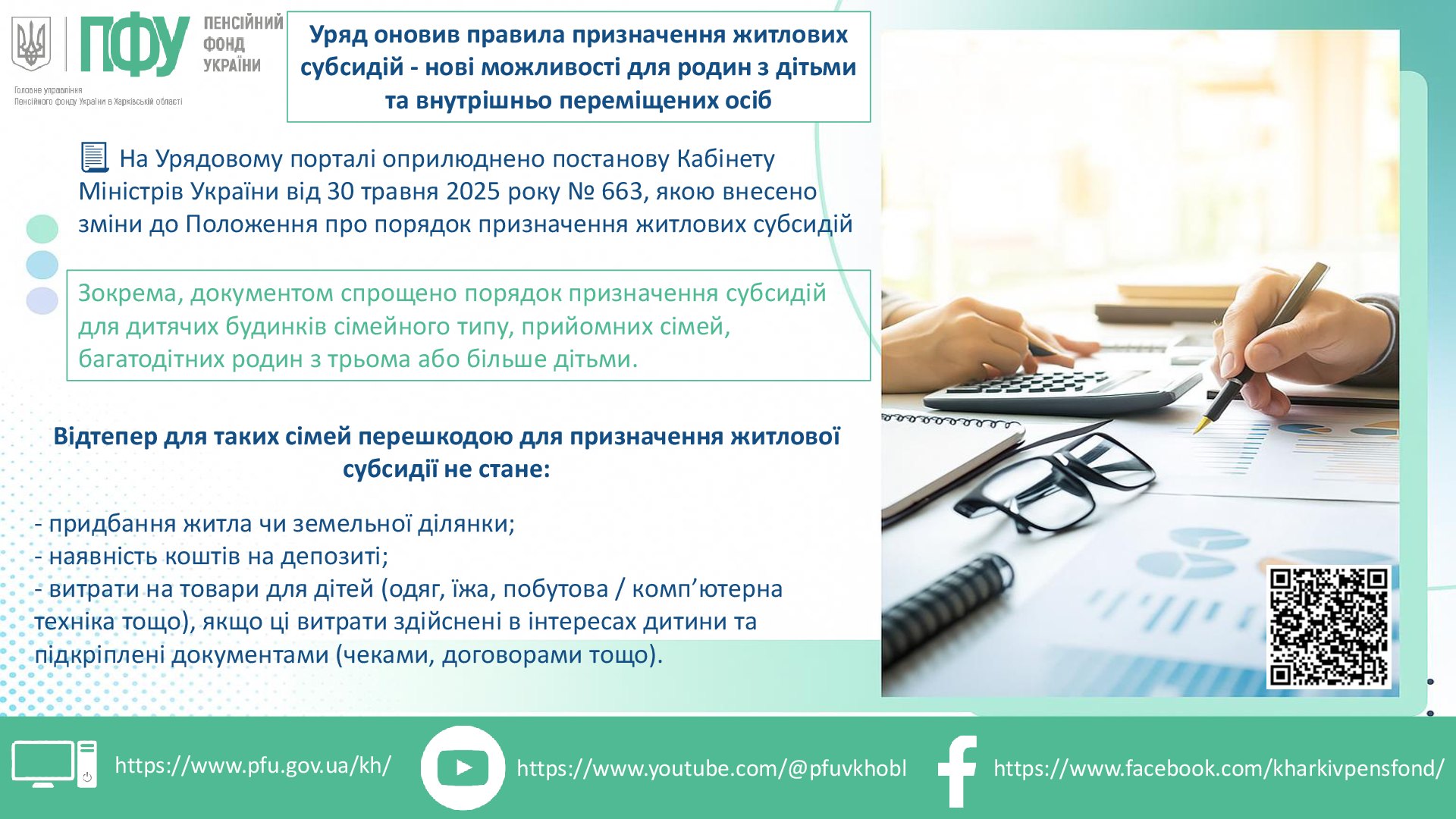 Постановою Кабінету Міністрів України від 30 травня 2025 року № 663 «Про внесення змін до Положення про порядок призначення житлових субсидій» спрощено порядок призначення субсидій для дитячих будинків сімейного типу, прийомних сімей, багатодітних родин з трьома або більше дітьми.