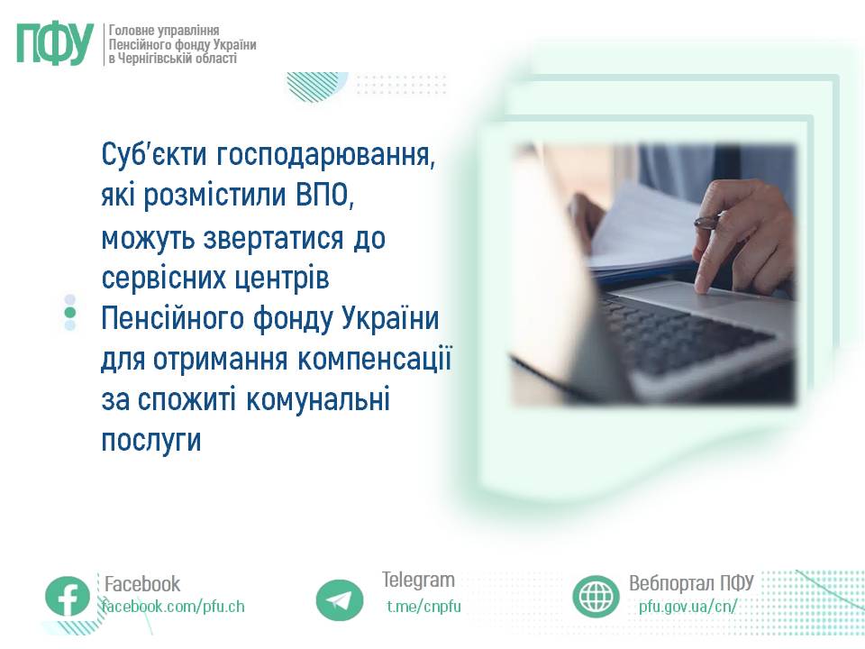 👩💻 За загальним правилом суб’єкти господарювання, які розміщують внутрішньо переміщених осіб і виявили бажання отримувати компенсацію за розміщення, звертаються із заявою та документами через електронний кабінет на вебпорталі електронних послуг Пенсійного фонду України.