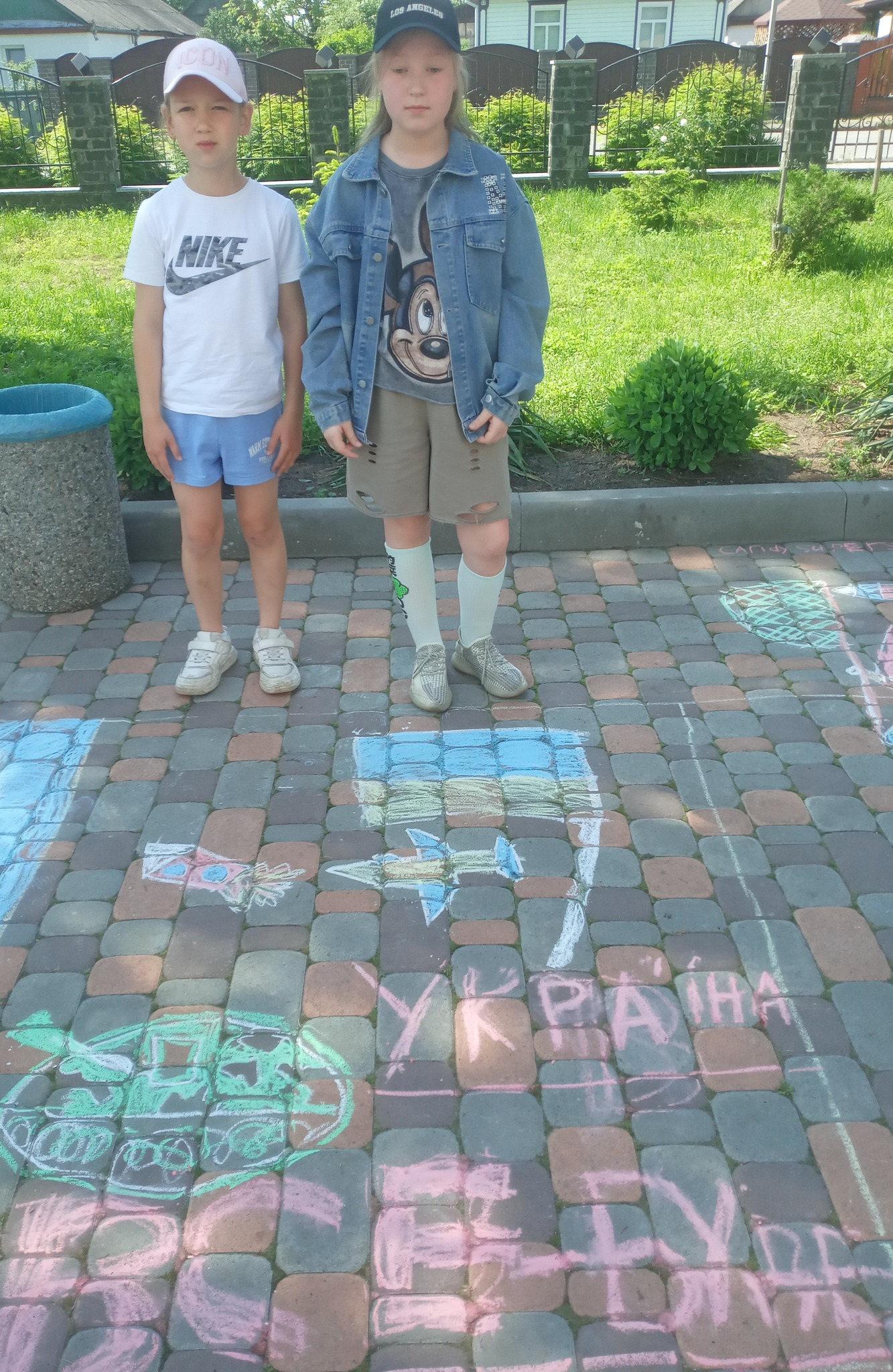 Літо розпочалося чудово, даруючи нам сонце та тепло, а дітям – довгоочікувані літні канікули. Саме у перший день канікул у пришкільному таборі Черняхівського ліцею 1, представники Центру соціальних служб організували незабутній захід – малюнок на асфальті під назвою “ВСЕ БУДЕ УКРАЇНА”. Юні художники з великим ентузіазмом взялися до роботи, відображаючи на асфальті найважливіші символи нашої країни – жовто-блакитний прапор, гордий герб, ніжні маки.