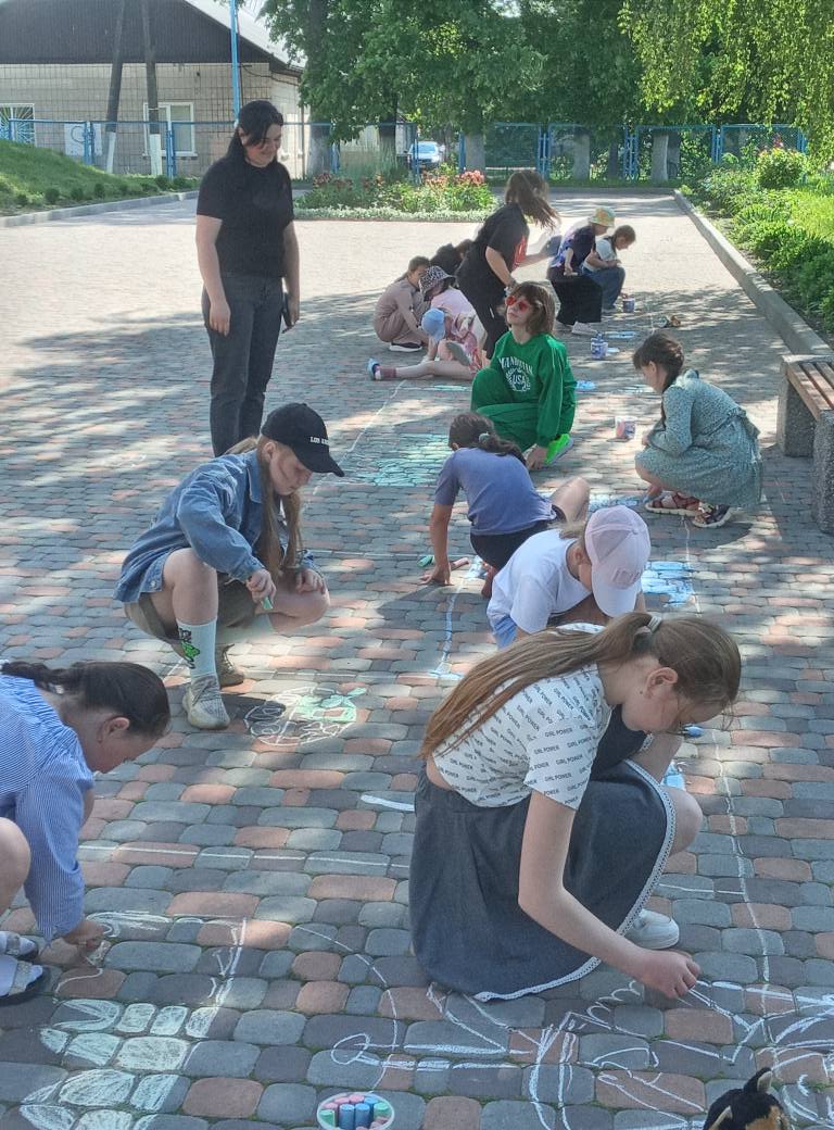 А ще діти малювали синє мирне небо, втілюючи свої дитячі мрії. Мрії про квітучу, мирну Україну, де кожен може відчувати себе у безпеці, мрію про безтурботне та щасливе дитинство, сповнене радості та сміху. Під час заходу згадали важливі правила безпечної поведінки влітку, щоб канікули були не лише веселими, але й безпечними. Ми щиро бажаємо всім дітям повною мірою насолодитися цими світлими літніми днями, радіти кожній миті канікул, проводити час весело та з користю. Нехай їхні серця будуть наповнені щастям, родинним теплом та мирним небом над головою! Нехай дитячі малюнки на асфальті стануть символом надії та віри у світле майбутнє України.