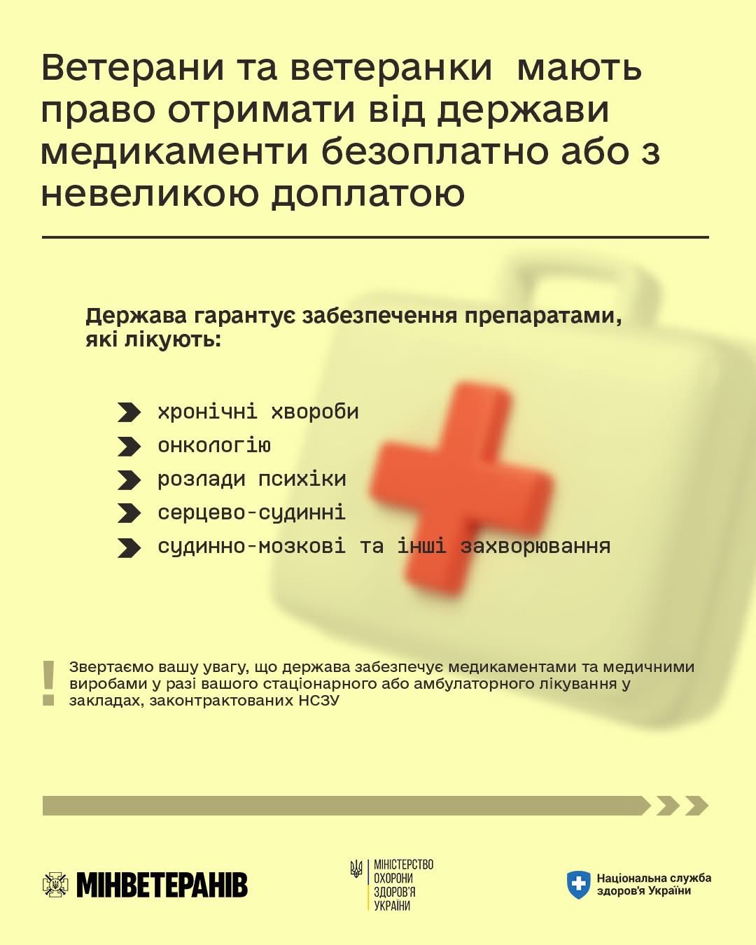 ‼️ Ветерани та ветеранки: ви маєте право отримати від держави медикаменти безоплатно або з невеликою доплатою.