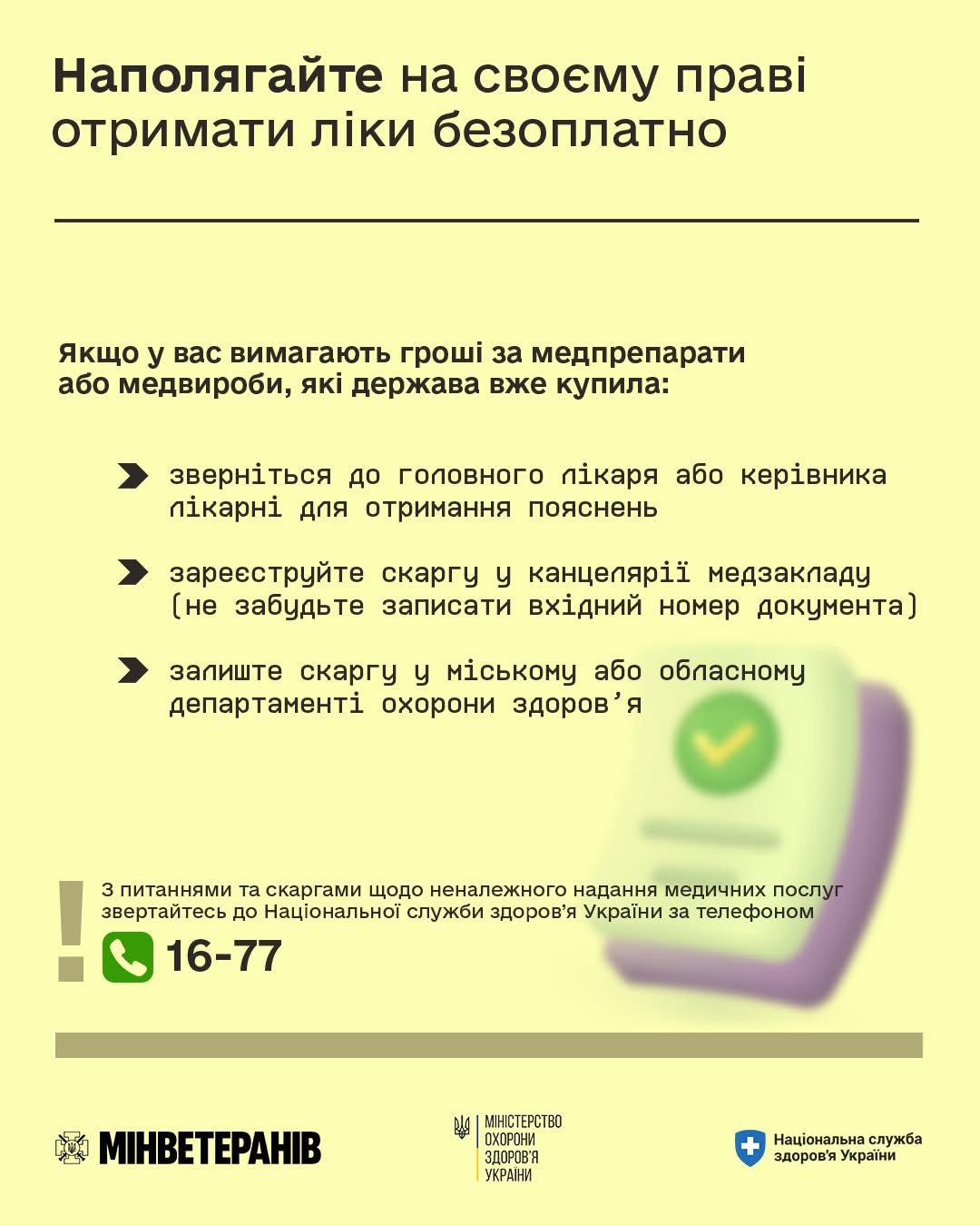 ❗Звертаємо вашу увагу, що держава забезпечує медикаментами та медичними виробами у разі вашого стаціонарного або амбулаторного лікування у закладах, законтрактованих НСЗУ Національна служба здоров’я України.