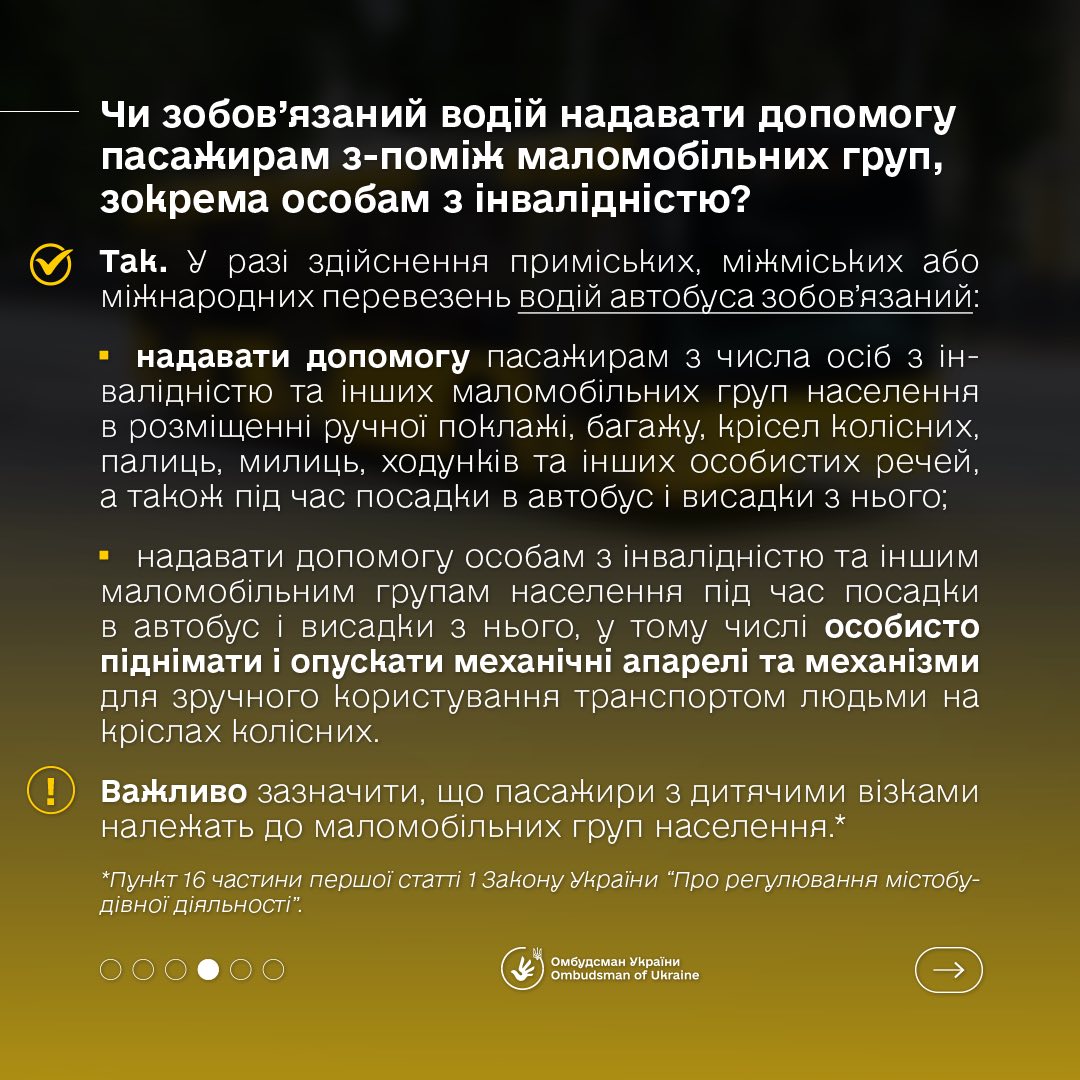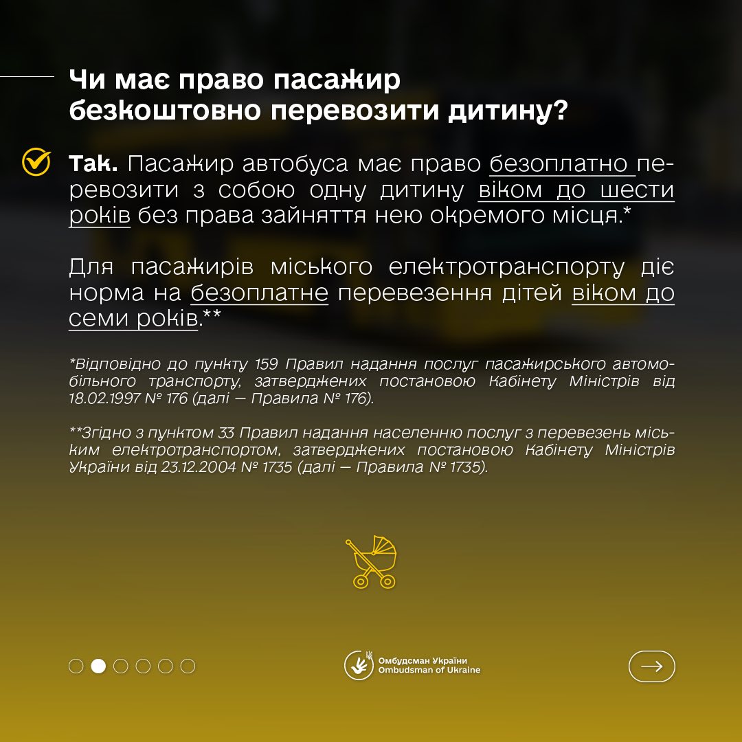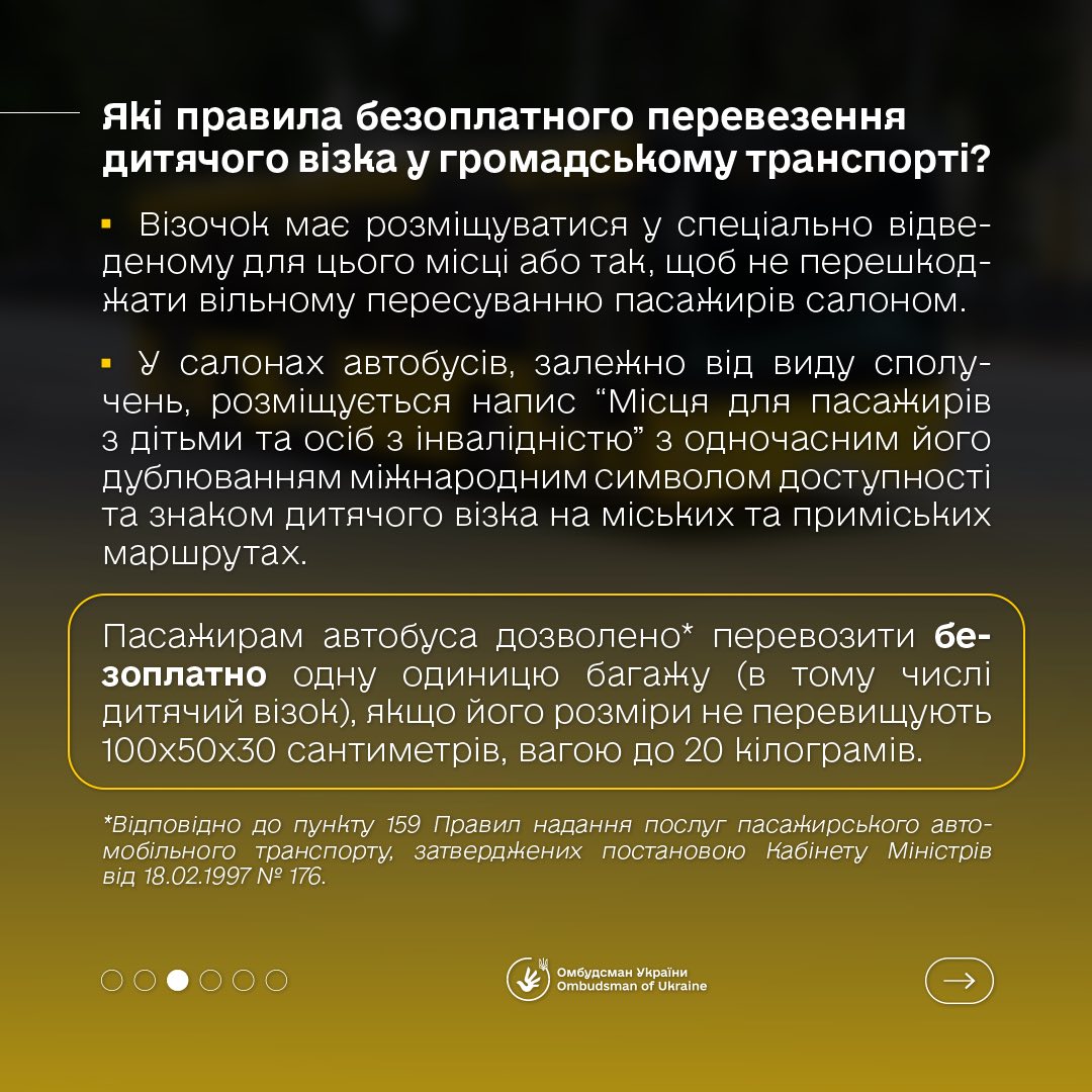 Омбудсман України Дмитро Лубінець розповідає, чи мають право пасажири з дітьми на безоплатний проїзд, які правила перевезення дитячого візка та чи повинен водій допомагати людям з-поміж маломобільних груп населення.