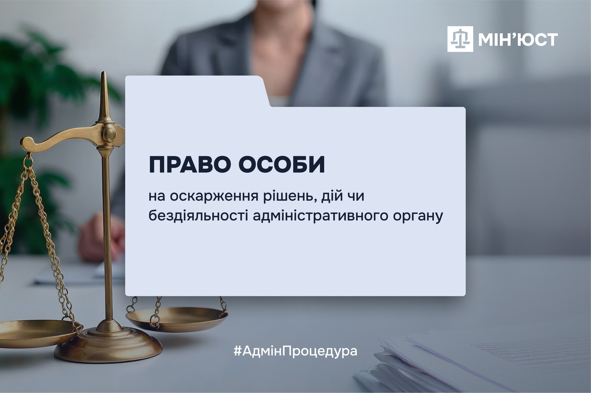 Закон України «Про адміністративну процедуру» гарантує кожному право оскаржити рішення, дії або бездіяльність адміністративного органу — як у межах самої установи, так і через суд.