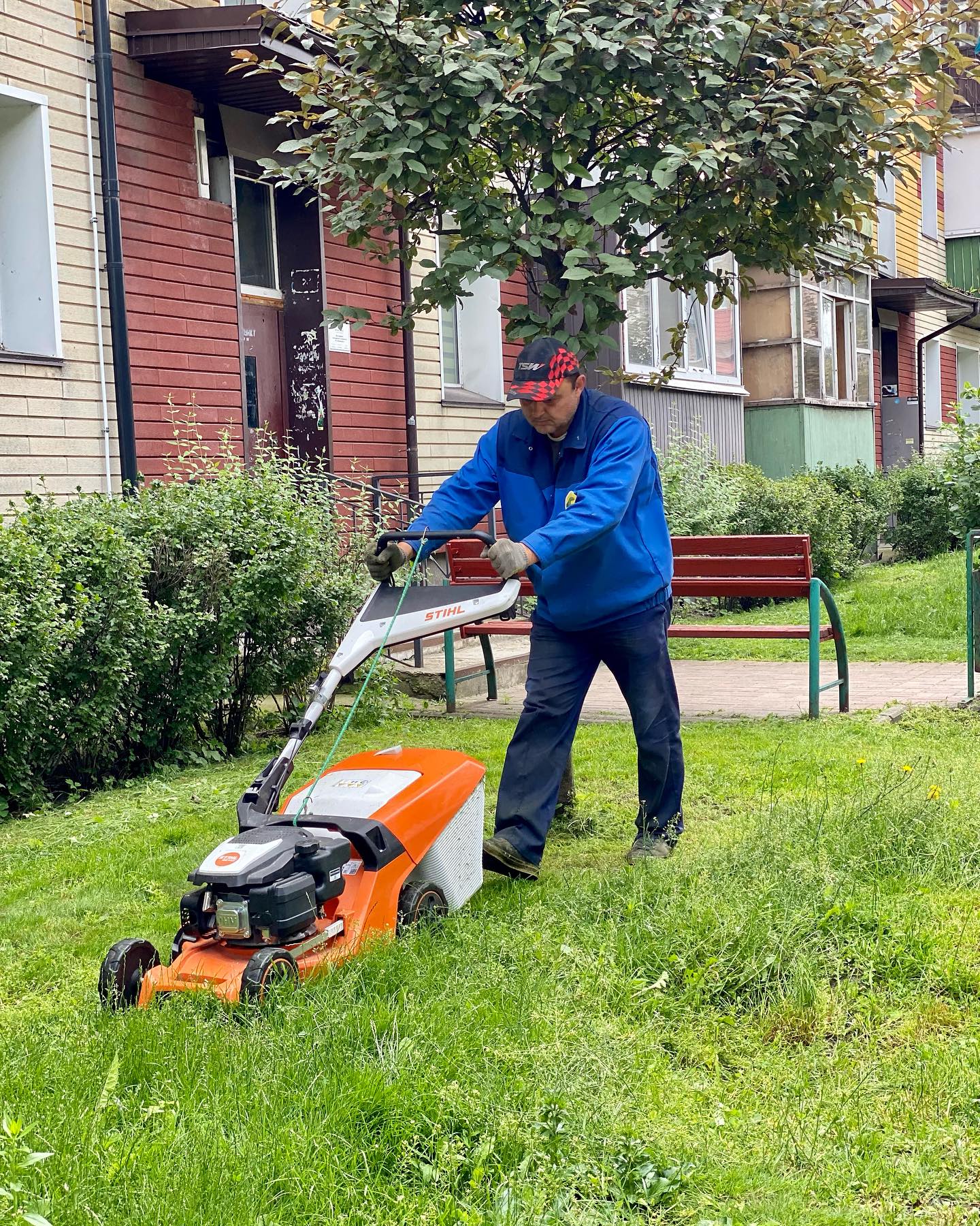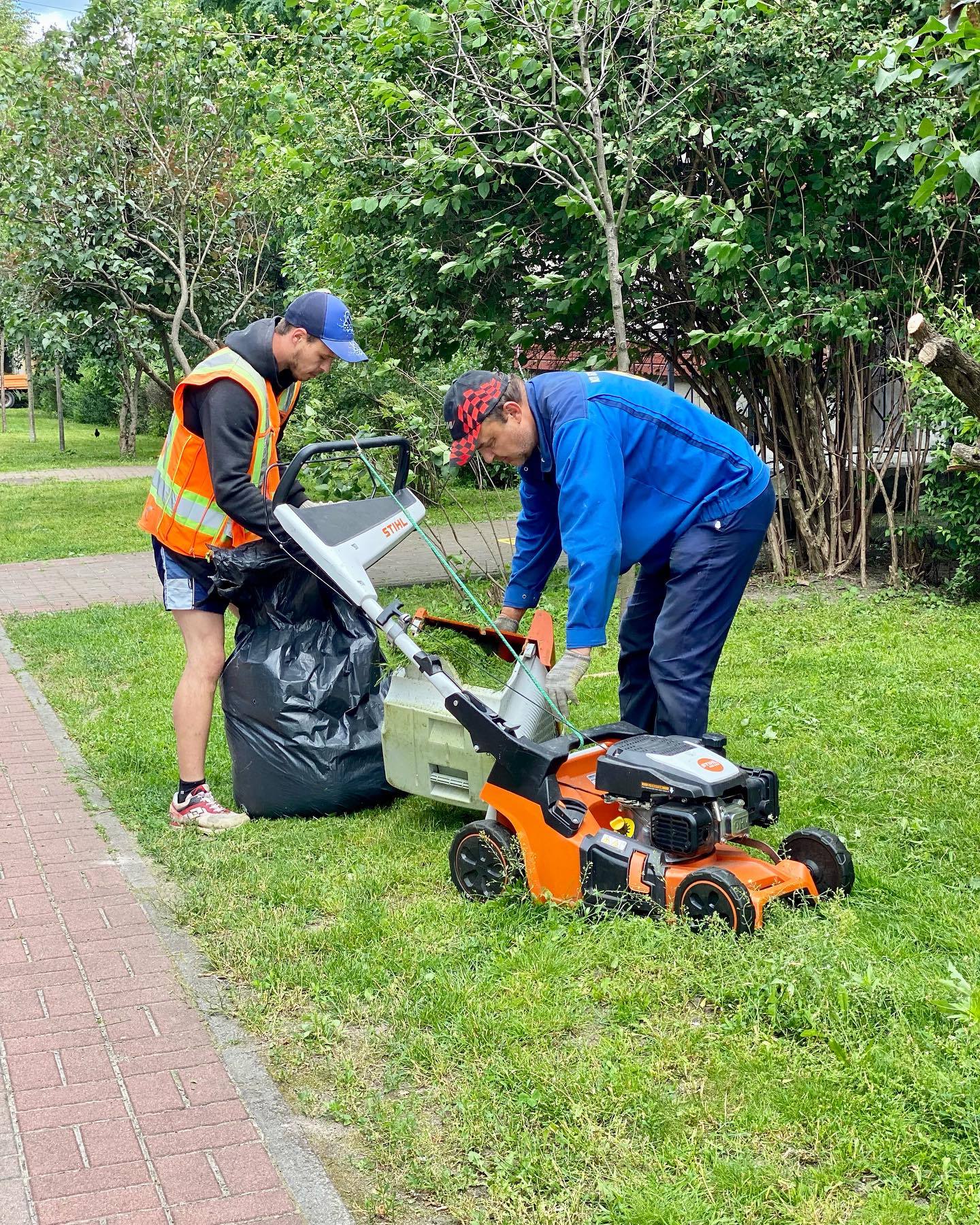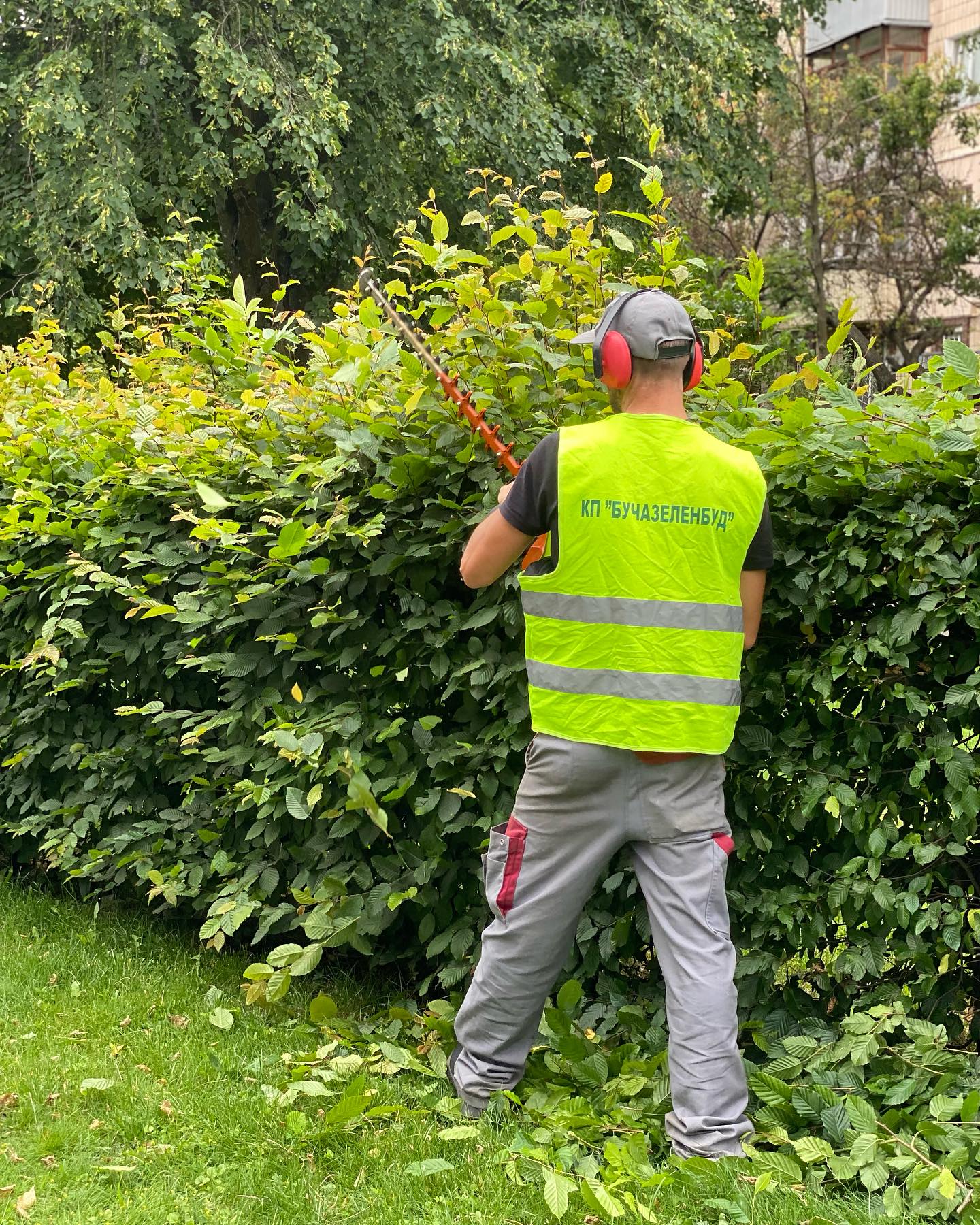 👷Працюємо щодня, щоб вулиці міста були чистими і доглянутими. Підстригаємо траву, кущі, прибираємо біля будинків, приводимо до ладу зелені зони.