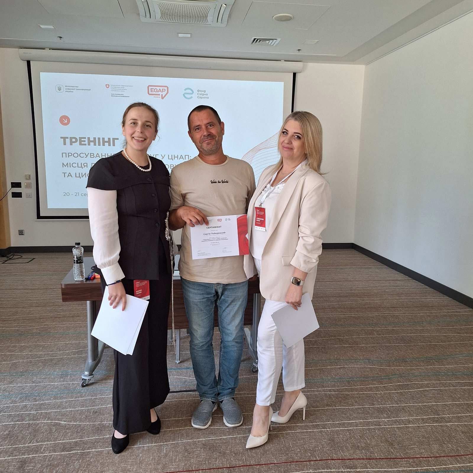 📅 21–22 серпня поточного року, Ольга Овчаренко, Сергій Побережний та Олена Ніколенко, представники Центру надання адміністративних послуг (ЦНАП) виконавчого комітету Васильківської селищної ради, успішно пройшли навчання на тренінгу «Просування е-Послуг у ЦНАП місця для самообслуговування та цифрова комунікація». Захід відбувся у місті Києві, зібравши фахівців з усієї країни для обміну досвідом та знаннями.