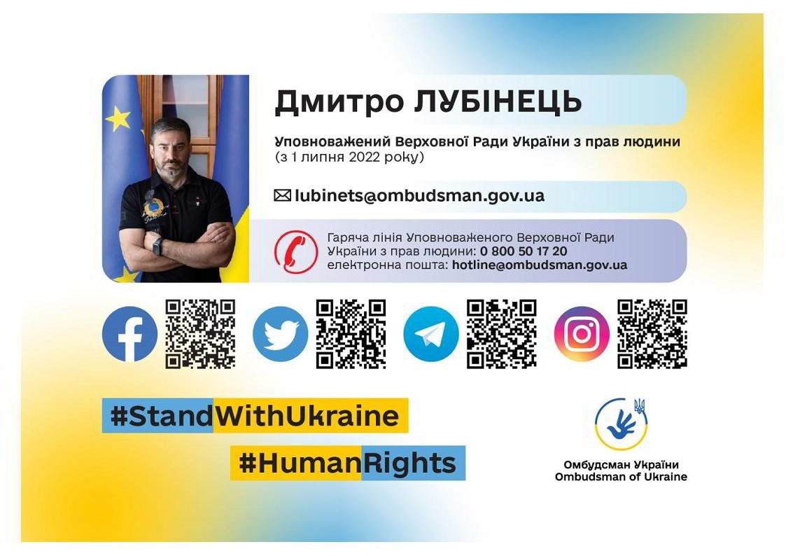 Звернутися до Уповноваженого Верховної Ради з прав людини громадяни можуть за адресою: м. Кропивницький, вул. Тараса Карпи, 84, каб. 118, тел.: 0800-50-17-20, 044-299-74-08.