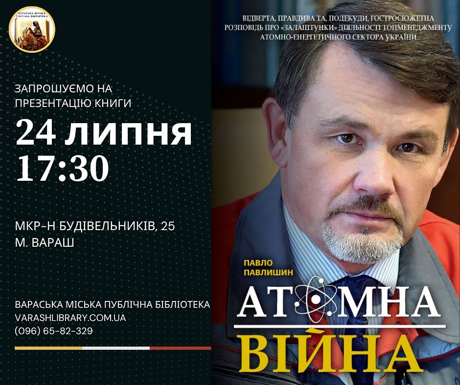 Не пропустіть можливість почути з перших вуст про створення книги “Атомна війна” та поспілкуватися з її автором. Зустріч у Вараській міській публічній бібліотеці обіцяє бути пізнавальною та емоційно насиченою.