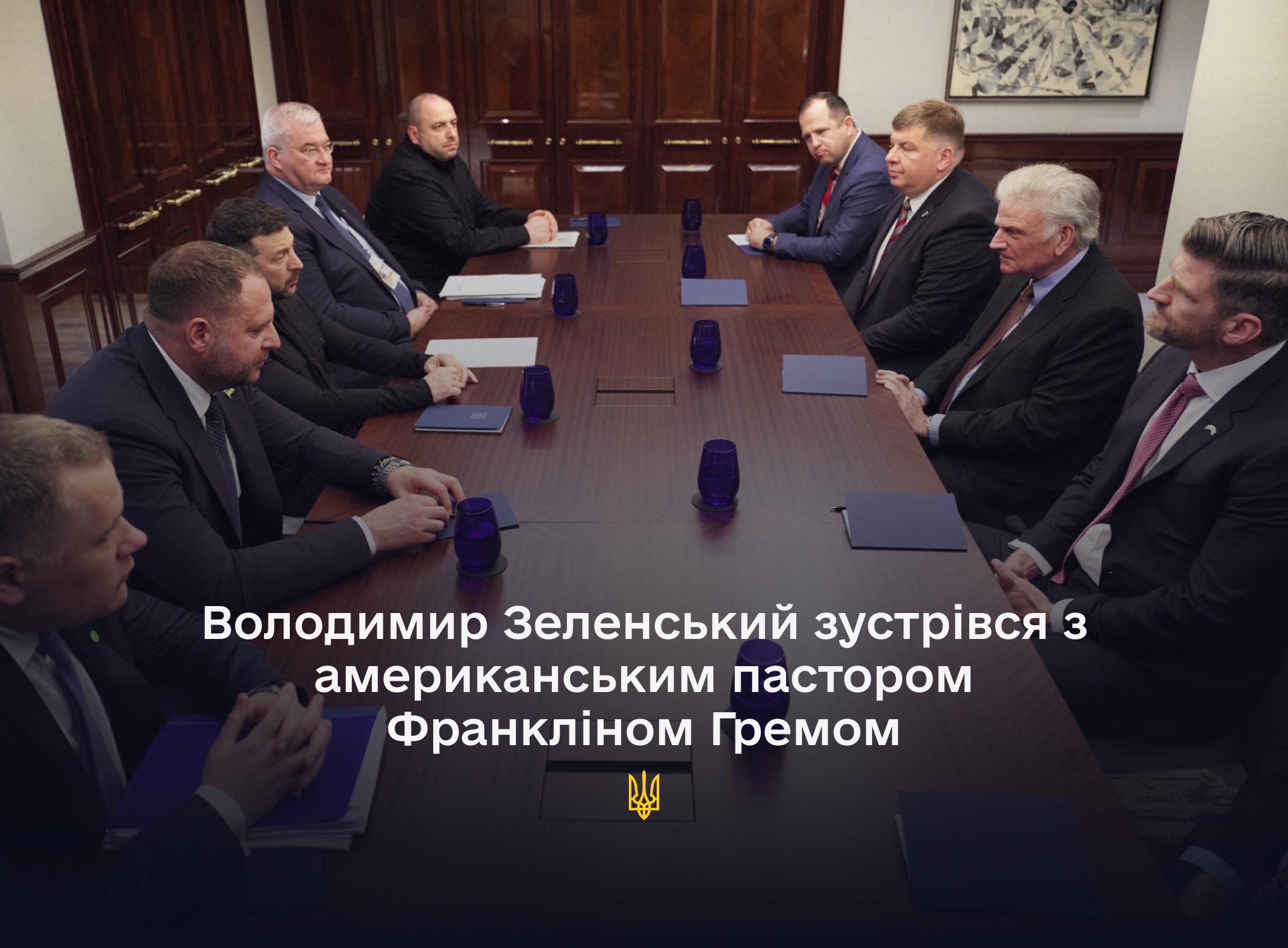 Президент України Володимир Зеленський провів важливу зустріч з Франкліном Гремом, президентом Євангельської асоціації Біллі Грема та організації «Сумка самаритянина» (Samaritan’s Purse). Обговорено питання гуманітарної допомоги та підтримки України в цей складний час. Зустріч підкреслює важливість міжнародної співпраці та підтримки для подолання викликів, з якими стикається наша країна.