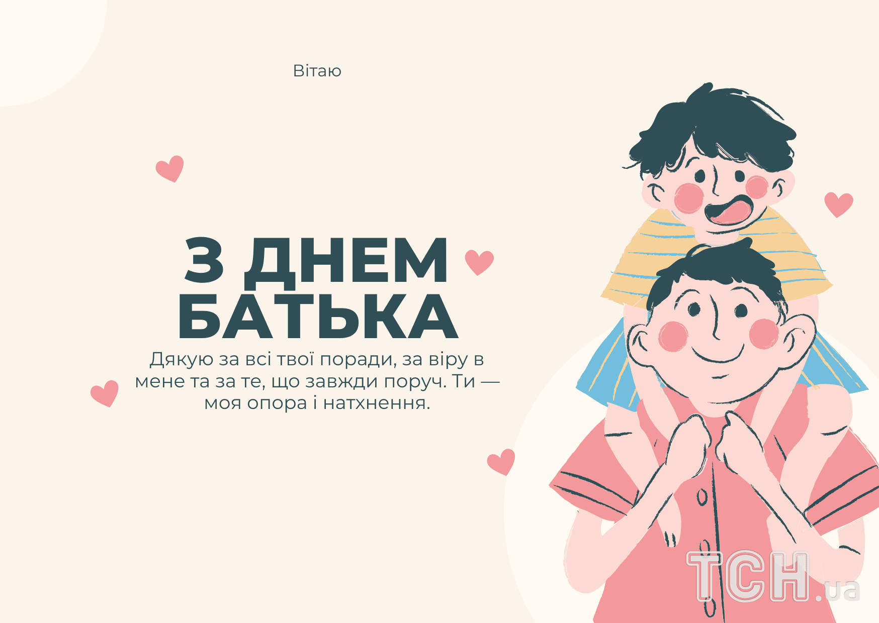 З Днем батька! Щиро дякую тобі за твою безцінну мудрість, невичерпне терпіння та безмежну любов, яку ти завжди даруєш. Ти є незмінним прикладом сили, доброти та справжньої чоловічої гідності для мене.