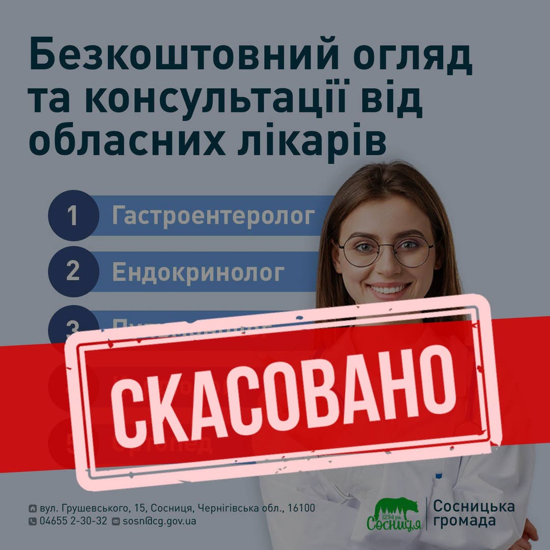 Приносимо свої вибачення за можливі незручності, пов’язані зі скасуванням прийому обласних лікарів. Дякуємо за ваше розуміння та терпіння. Ваше здоров’я – наш пріоритет, і ми робимо все можливе, щоб забезпечити вам доступ до якісної медичної допомоги. Будьте здорові!