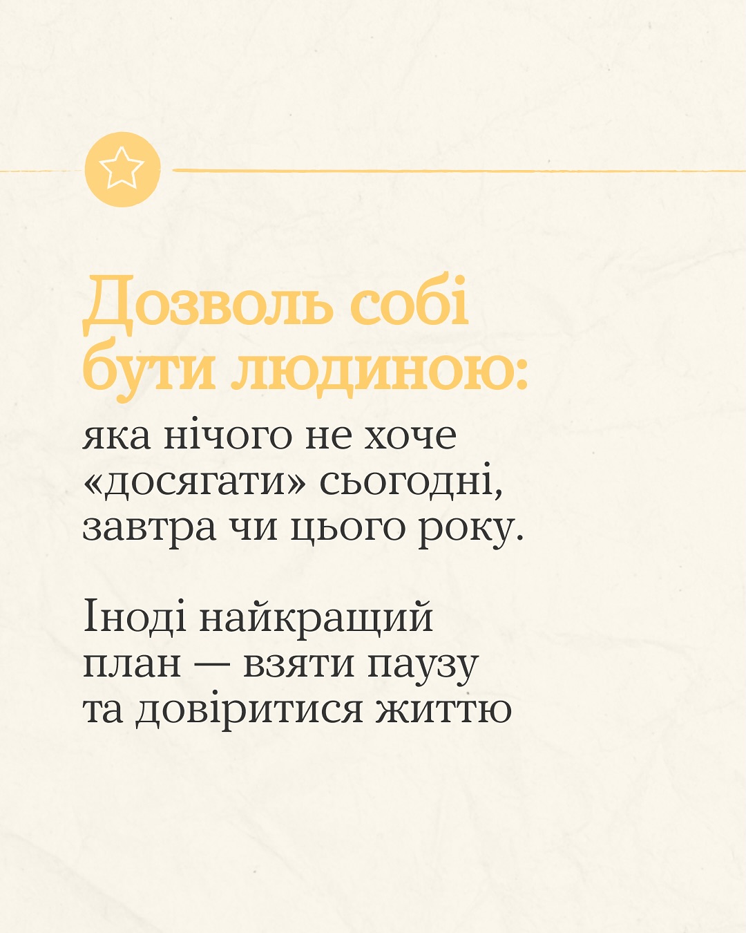 Гортай карусель і дозволь собі хоча б щось одне із цього переліку. Просто сьогодні.