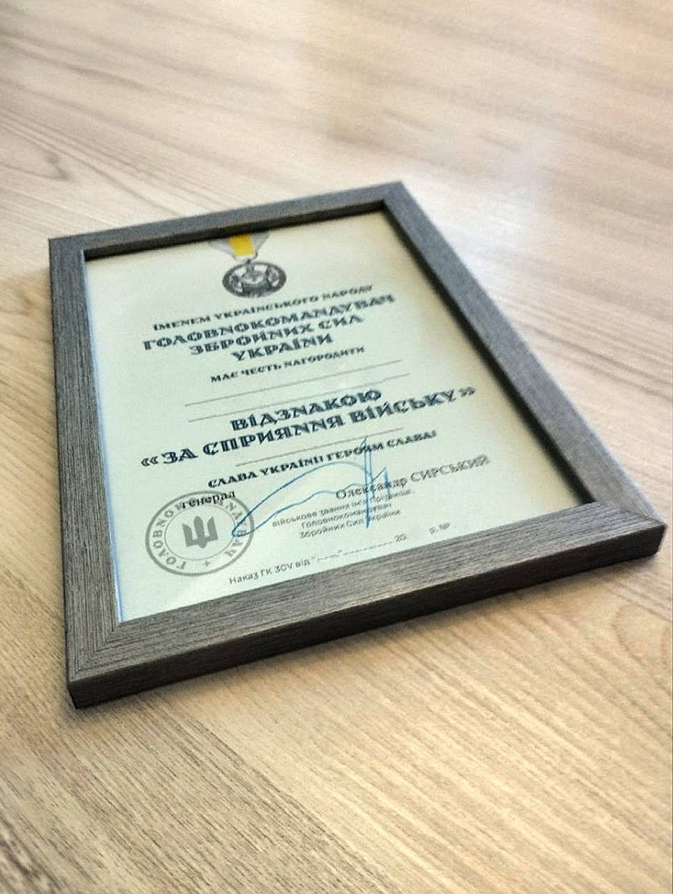 Пристолична громада відзначена «За сприяння війську»
