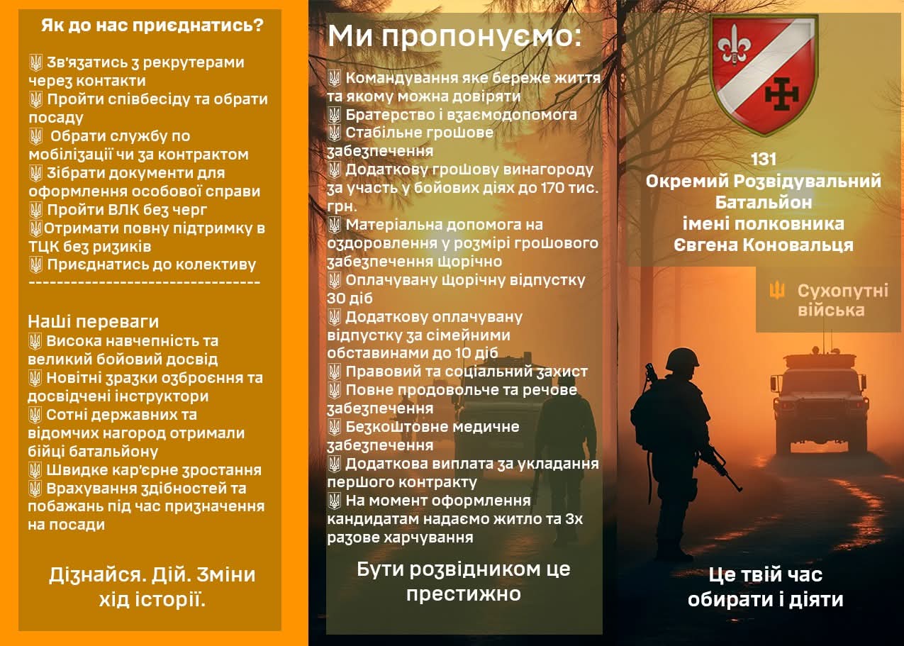 🫡🇺🇦ПРИЄДНУЙСЯ ДО 131 ОКРЕМОГО РОЗВІДУВАЛЬНОГО БАТАЛЬЙОНУ ІМЕНІ ПОЛКОВНИКА ЄВГЕНА КОНОВАЛЬЦЯ!