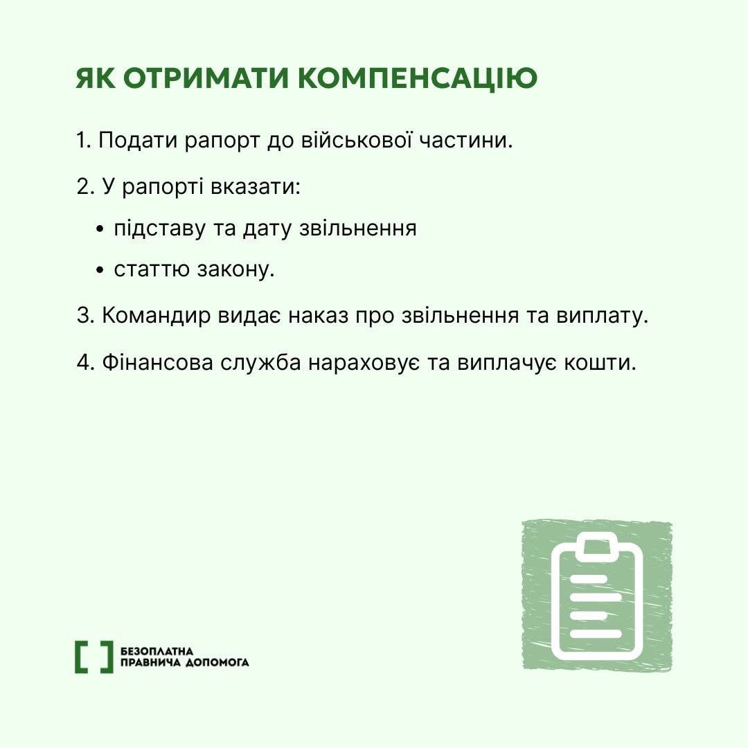 Процедура отримання компенсації зазвичай включає подання відповідних документів до військової частини або установи, де проходив службу військовослужбовець. Додаткову інформацію та консультації щодо цього питання можна отримати, звернувшись до системи надання безоплатної правничої допомоги.
