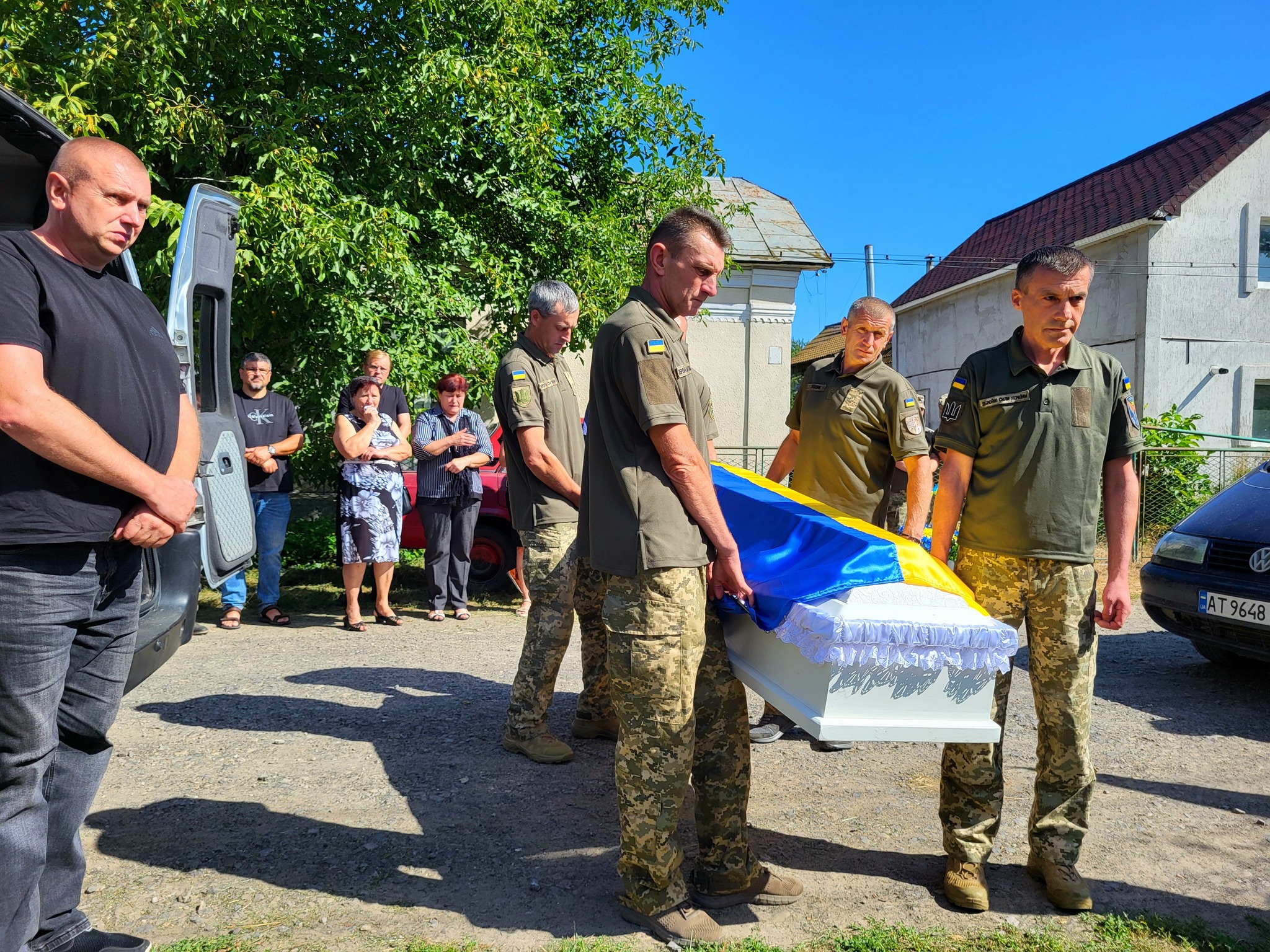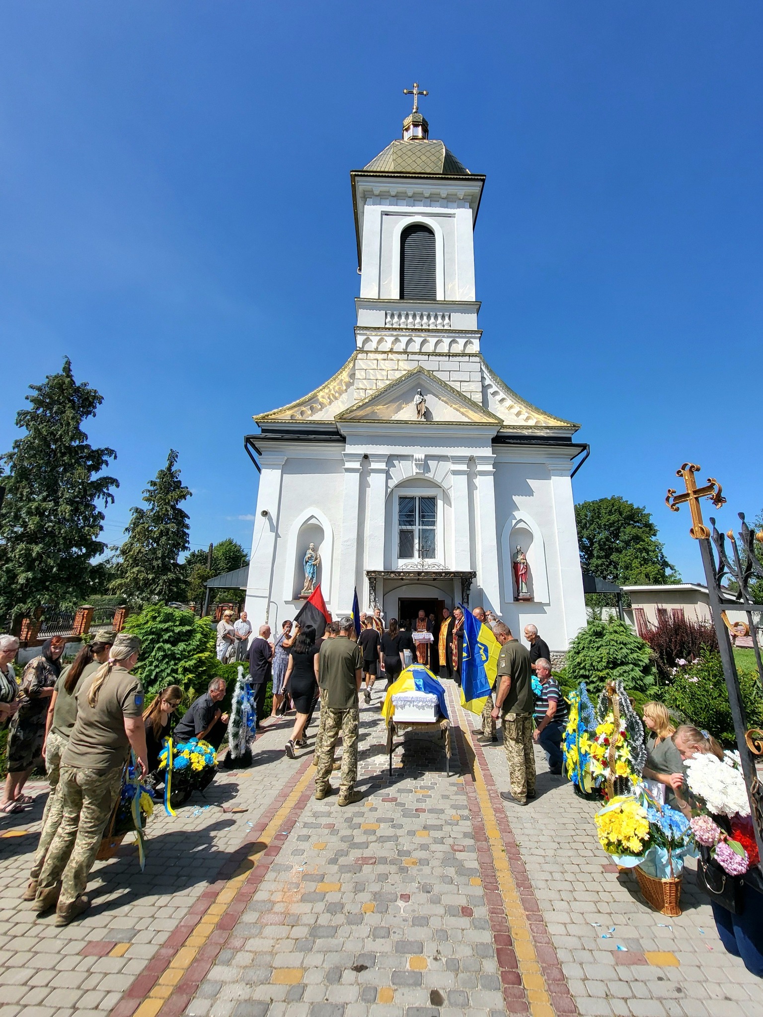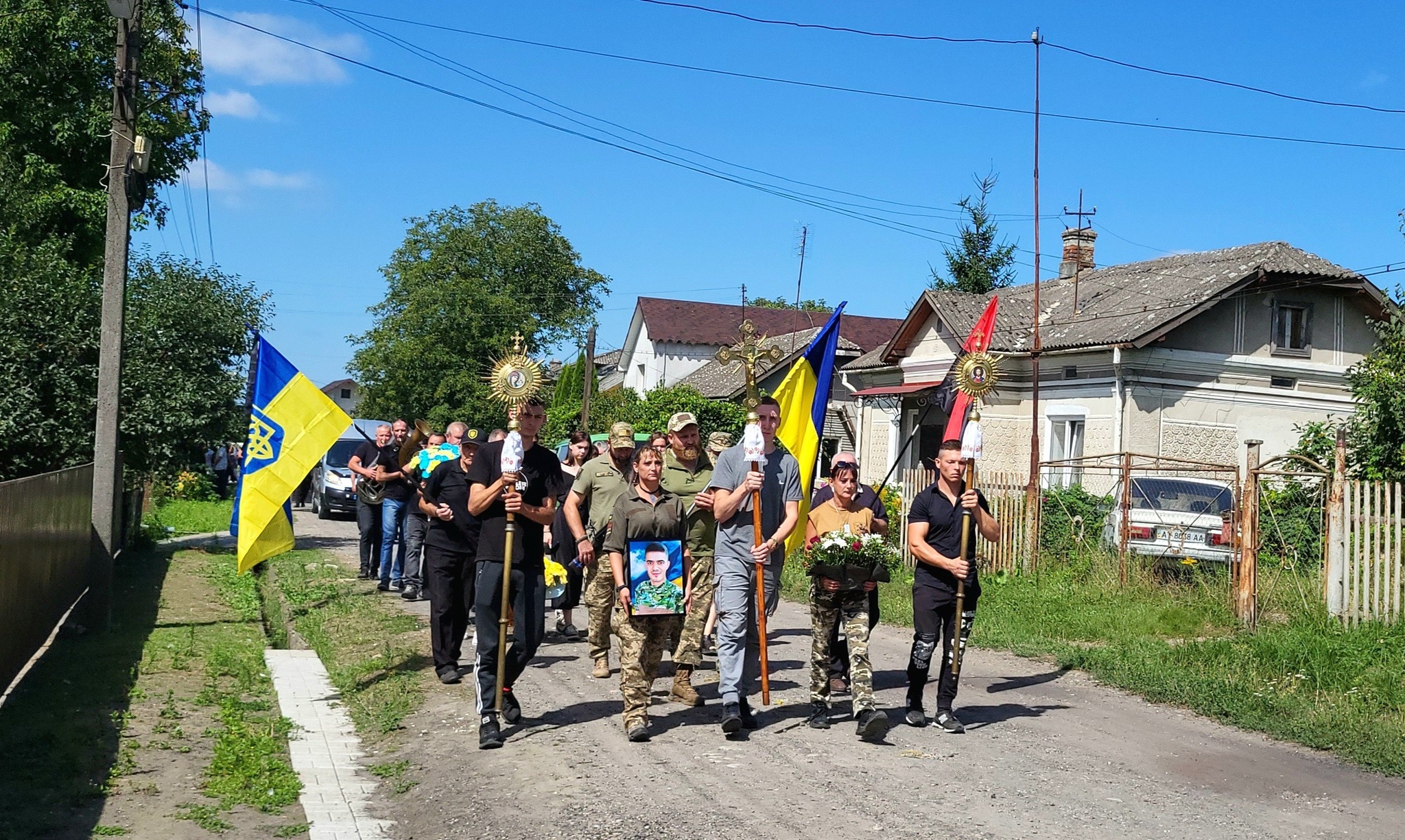 Сьогодні Бурштин зустрічав свого Героя ласкавим сонцем, квітами та невимовним жалем. До рідного подвір’я зійшлася численна громада: рідні, друзі, сусіди, побратими – усі, хто хотів віддати шану, промовити молитву, подякувати та підтримати згорьовану родину.